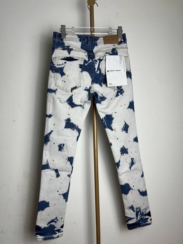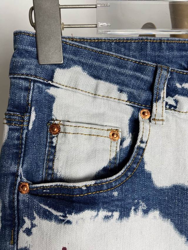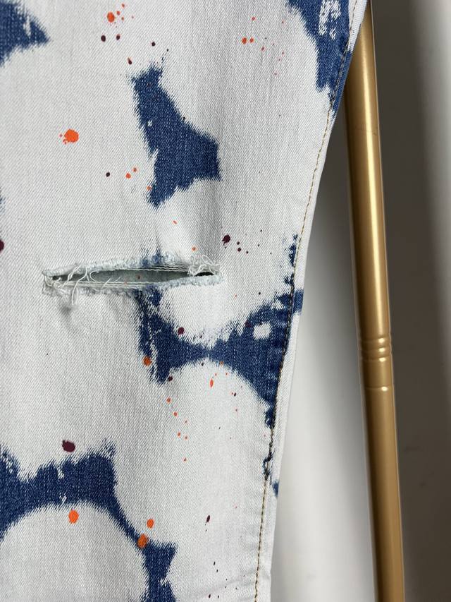Bk018# Correct version High quality Popular Pu splash ink blue ripped button lea