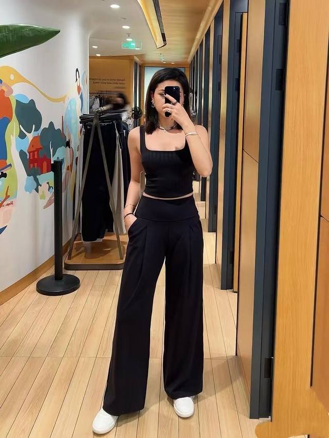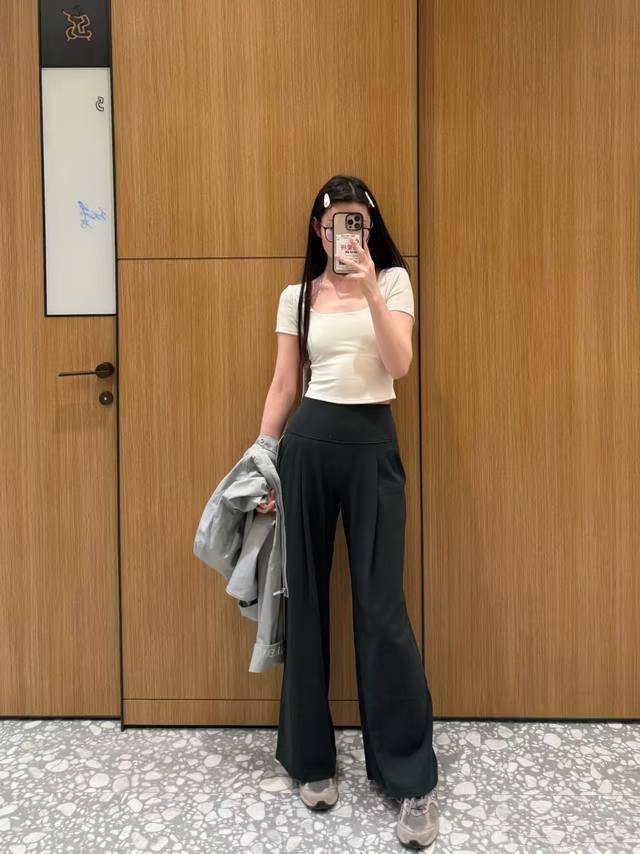 Another amazing pair of pants is here, 31-inch full-length wide-leg pants, made with Lulu's signature nude skin-friendly fabric. The nude fabric is incredibly soft, breathable, thin, and skin-friendly and comfortable. It has an elastic waist and graphite gray, which is super versatile. You can pair it with a vest or short sleeves and go out on the street~~ ~