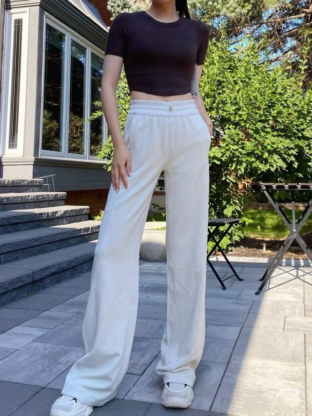bone white model picture, top version, Lulu threaded straight pants Lululemonsoftstreme pants are very popular online, various slimming and long legs, suitable for many occasions