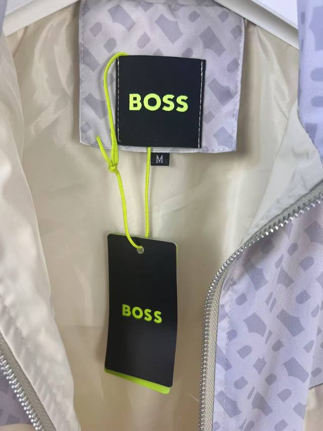 Boss 2025 Autumn/Winter new style stand-up collar windbreaker jacket official website synchronized jacquard patchwork design sleeve badge leather patch original custom hardware zipper routing neat upper body effect perfect men's casual jacket