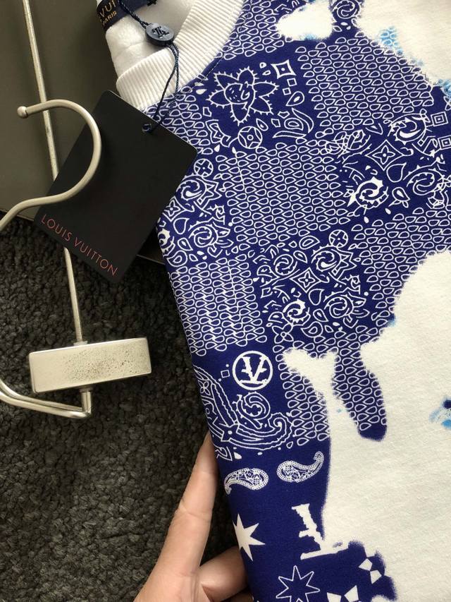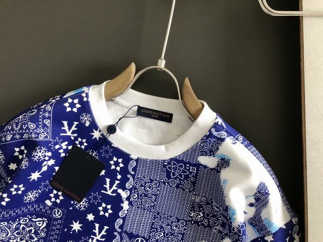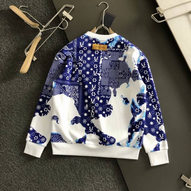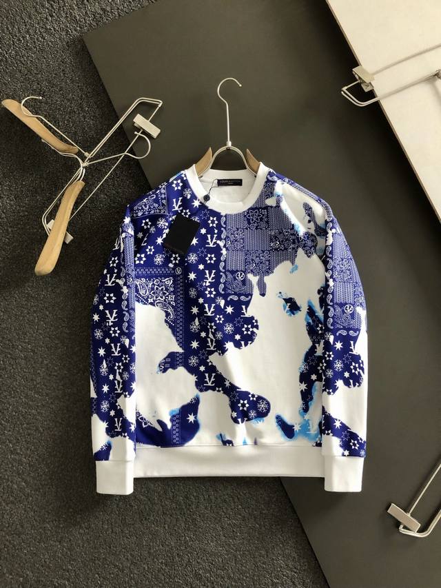 Brand L** After-sales service available. 2025 Autumn Collection, Top-tier imported private goods, high-end black, white, and gray multi-color blended court style monogram print plaid crew neck sweatshirt. Trendy elements combined with boutique style, fashionable yet luxurious, undeniably high quality, superb fit. Luxury official website style, boutique style. Sizes Xssml.