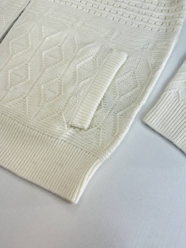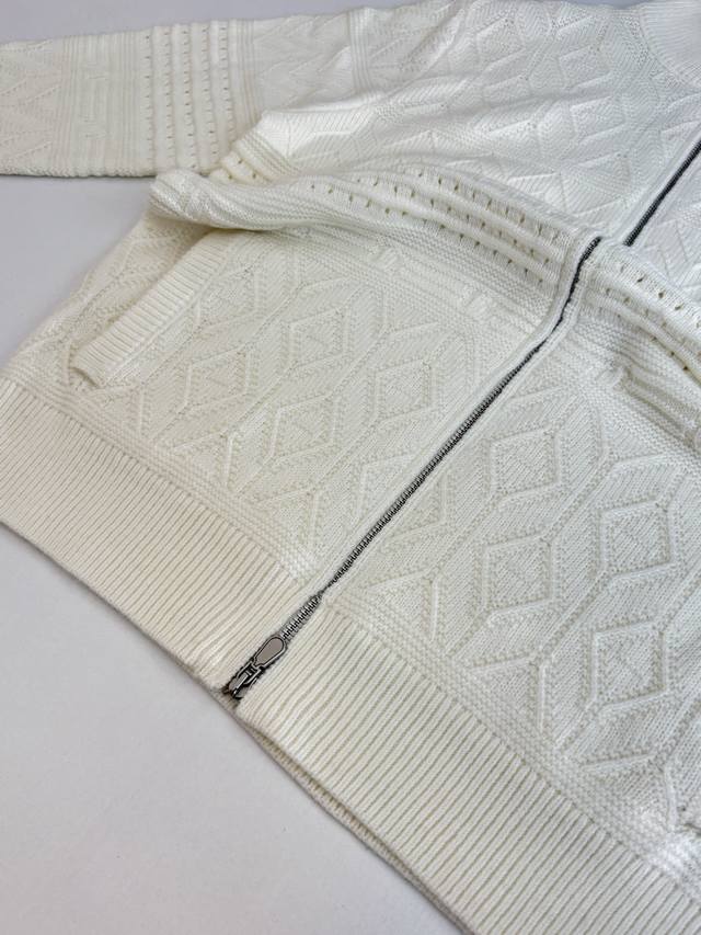 Brunello Cucinell* BC Autumn/Winter New Jacquard Zip-Up Cardigan This zip-up cardigan is made from 30% wool and 70% acrylic yarn. The body features a subtle jacquard pattern, breaking the monotony of a solid-color knit and exuding a delicate texture in a low-key manner. The stand-up collar design flatters the neckline, and the smooth zipper closure completes the look. Size: 48 50 52 54 56