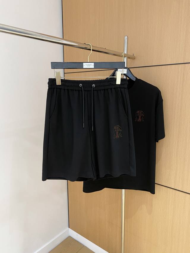 Bruty's high-end custom 2025 Spring/Summer new releases, the latest short-sleeved shorts casual suits, high-end custom design, avant-garde fashion! Brand logo, carefully crafted design, high-end custom cotton fabric. Soft and comfortable to wear. Counter-level exquisite stitching and fine workmanship. The upper body effect is invincible and handsome! A must-have for stylish men!