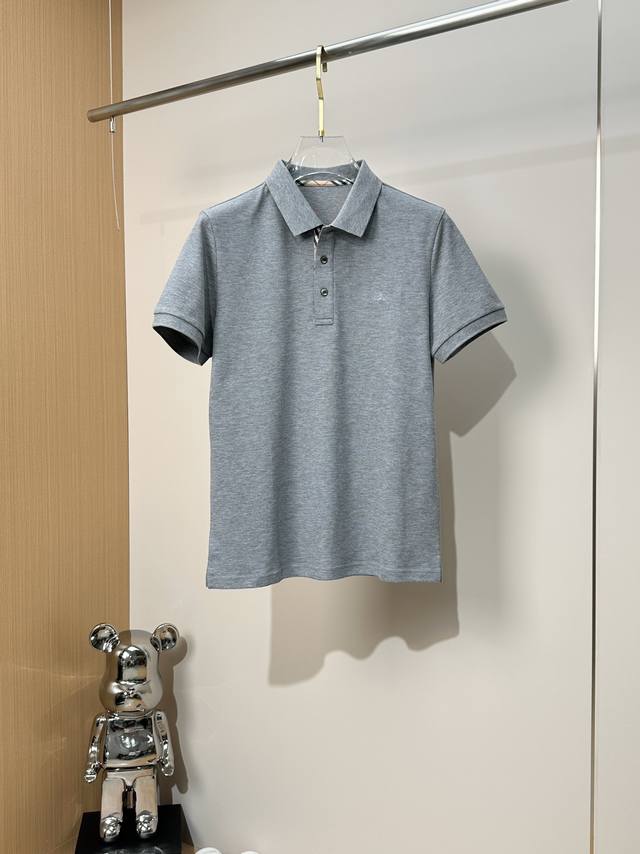 Burber 2025A W Spring/Summer Imported Special Yarn Double Mercerized Long-Staple Cotton Collared Short-Sleeve Polo Shirt (