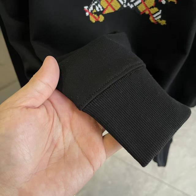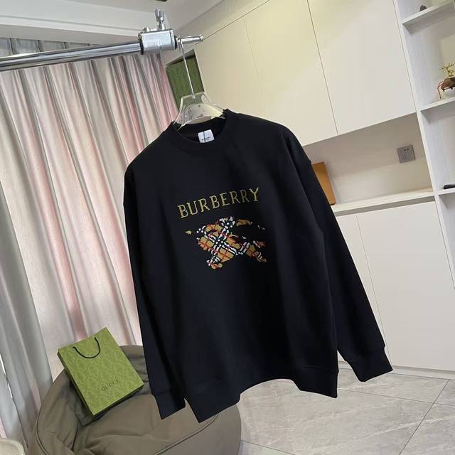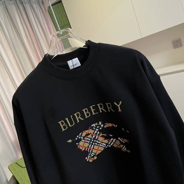 Burberry 2025 Autumn/Winter New Arrival Letter Logo Horse Embroidery Custom Fabric 400G Crew Neck Sweatshirt with Complete Labels, Unisex. Sizes: S, M, L, XL, XL,