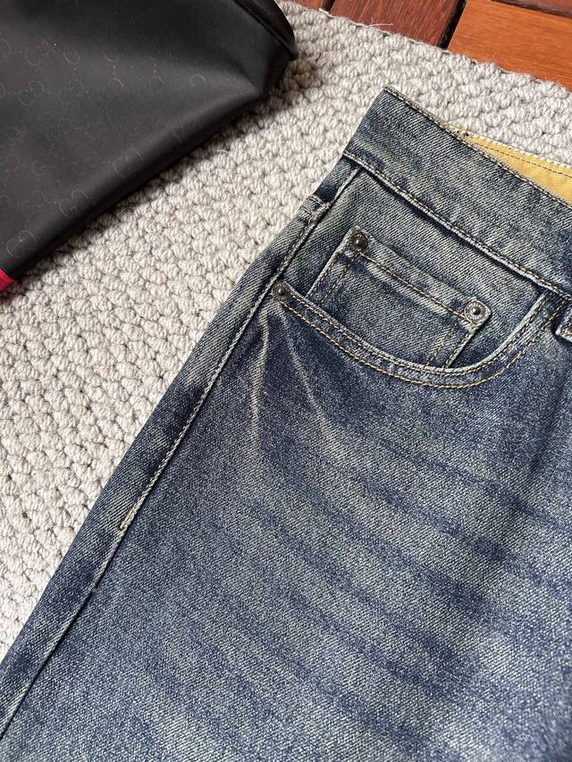 Burberry. A super stylish pair of jeans, made with custom-made original washed denim fabric, featuring a unique design, top-quality craftsmanship with a logo pattern, and original hardware embellishments. An exceptionally high-end pair of jeans, the materials and craftsmanship are luxurious and exquisite, resulting in a very high-class look. They look handsome and stylish when worn. Recommended sizes: 29-38 (excluding 35); 37