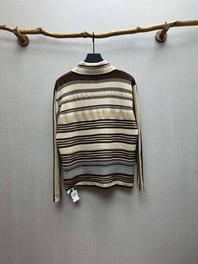 / Bv 25Ss New Striped Long-Sleeve Polo Shirt Men's Beige High Version Sizes: SML