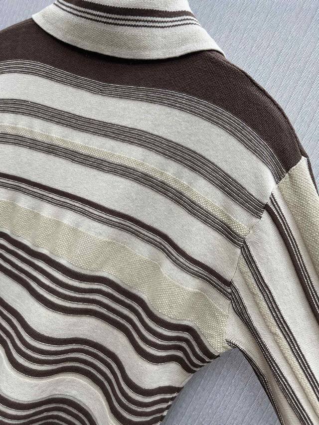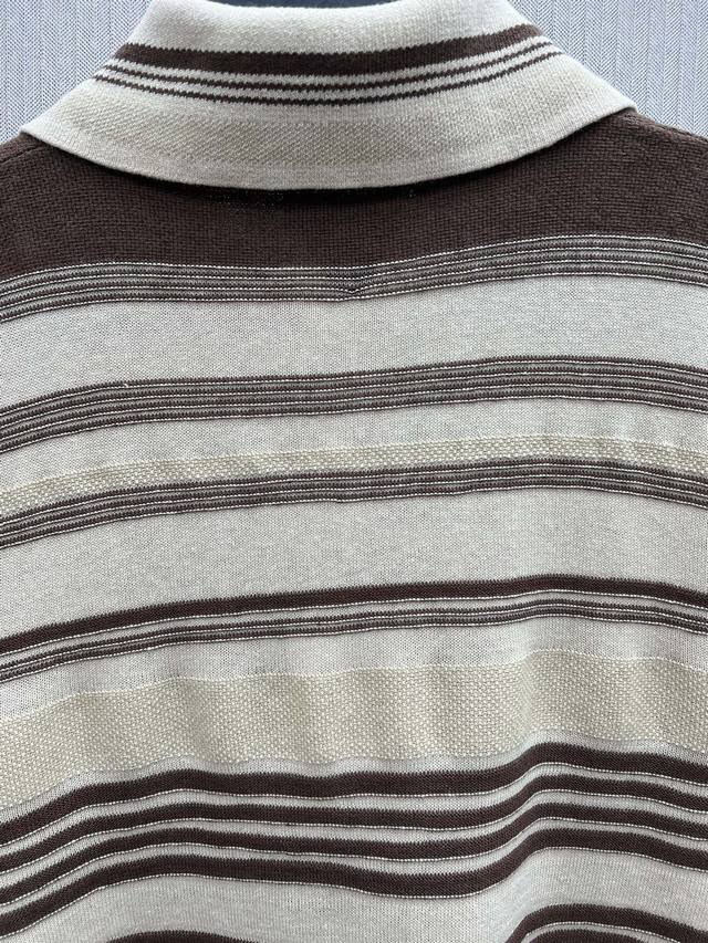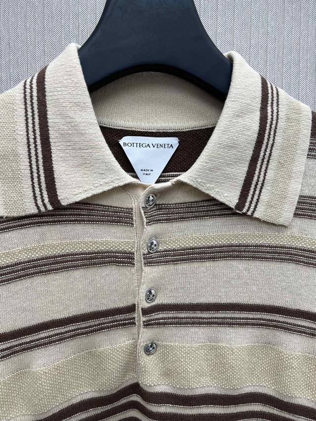 Bv 25Ss New Striped Long-Sleeve Polo Shirt Men's Beige High Version Ddd Sizes: SML DDD