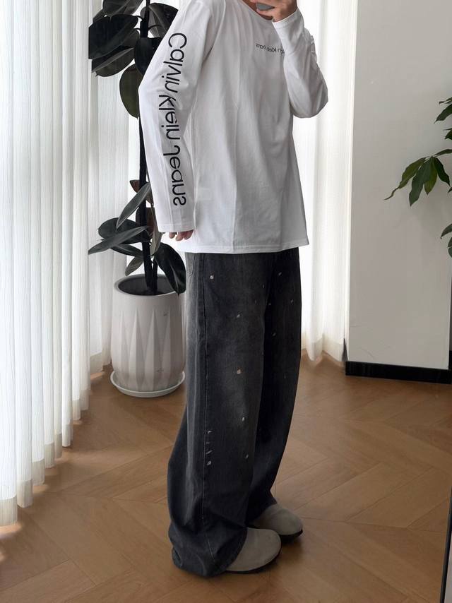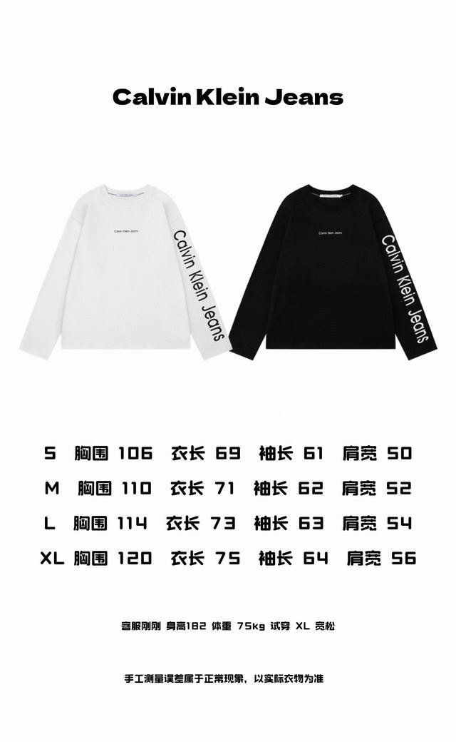 Calvin Klein Ck Classic Letter Label Print Logo Couple Crew Neck Long Sleeve T-Shirt - Original Quality Color: Black, White Size: S, M, L, XL Number: 252228 Exclusive Custom Original Heavyweight 280-300G Pure Cotton Double Yarn Fabric Extremely Soft and Comfortable % Distinguished from Top-Tier Fabrics on the Market No Shrinking, No Deformation, No Pilling! This garment features original high-weight, custom-woven, and custom-dyed tightly woven double-yarn ribbing. The fabric and ribbing are dyed in the same vat, ensuring no color difference and preventing deformation. The entire garment is constructed using a three-needle, five-thread technique, with double stitching at the neckline, shoulders, and sleeves. The cut is three-dimensional and textured. This is an original oversized, drop-shoulder style that runs large, unlike the smaller sizes found in other garments on the market. For women, the smallest size is generally recommended. It includes the original label, main text, and wash label. All tags and packaging are complete, making it easy to store and personalize. Calvin Klein: Confident, free-spirited, and unconventional are the consistent style and philosophy of the international fashion and lifestyle brand Calvin Klein. Since its founding in New York in 1968, the brand has adhered to a minimalist and sensual aesthetic, incorporating it into its design and communication language to provide customers with endless possibilities for self-expression.