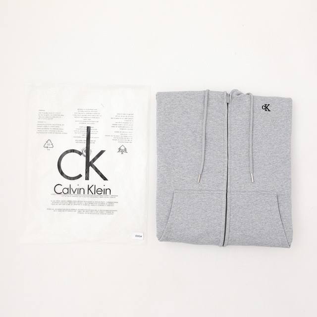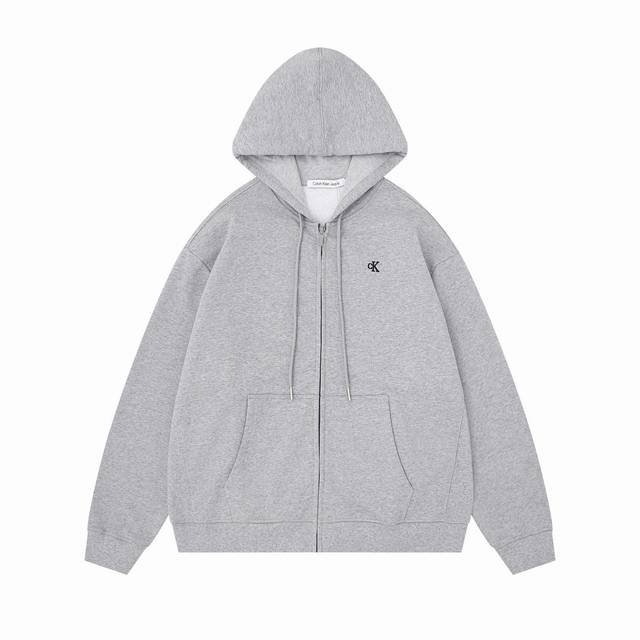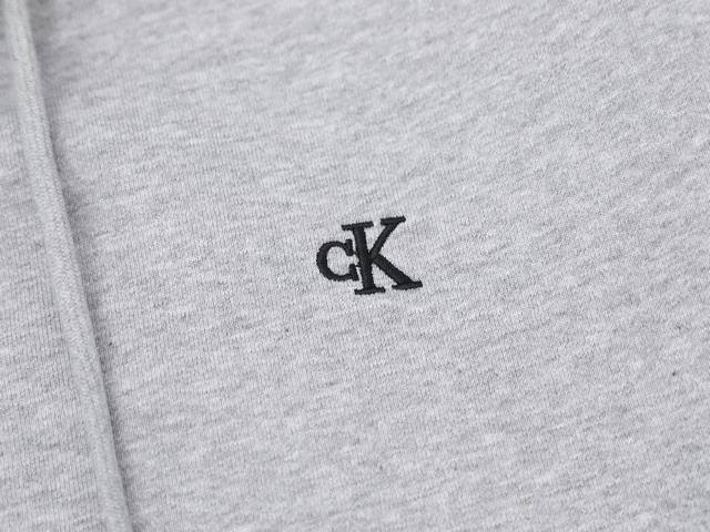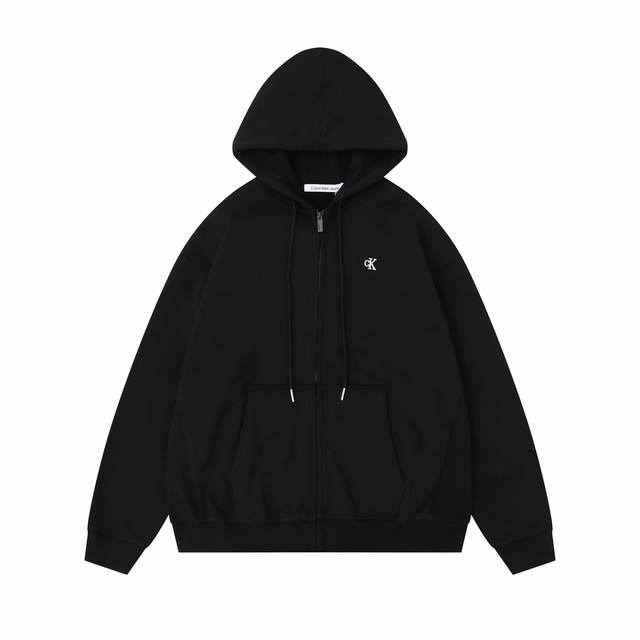 Calvin Klein Ck Classic Small Letter Embroidery Couple Fleece Hooded Zip-Up Sweatshirt Jacket - Original Quality