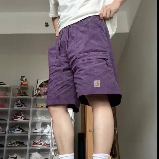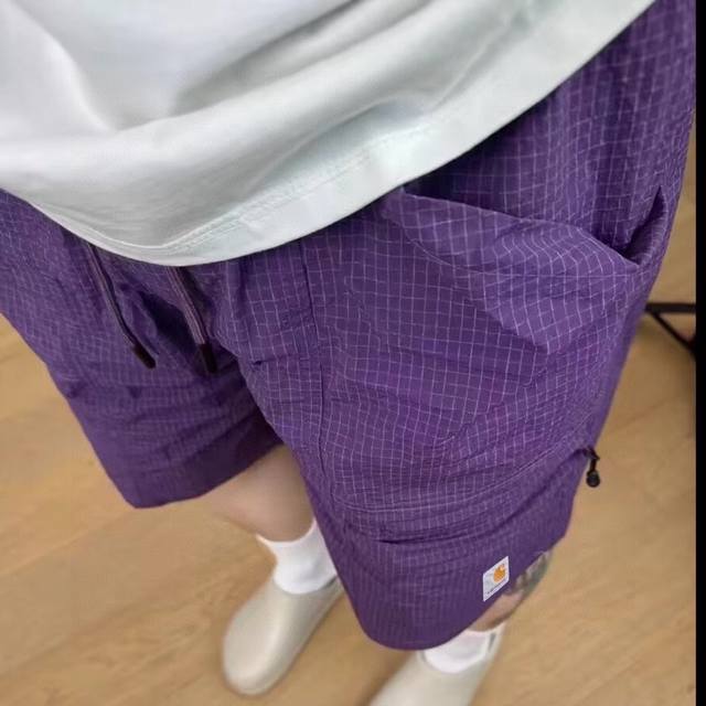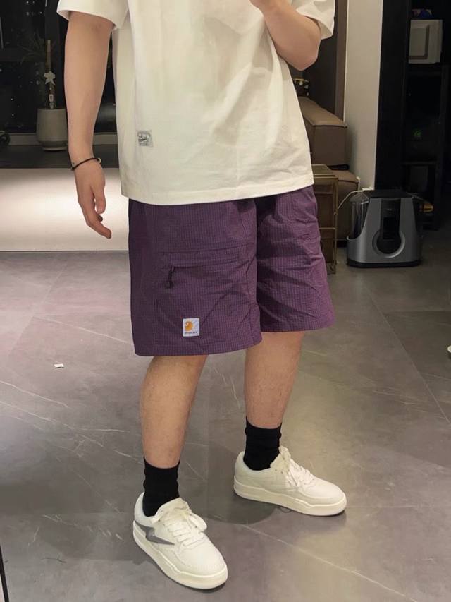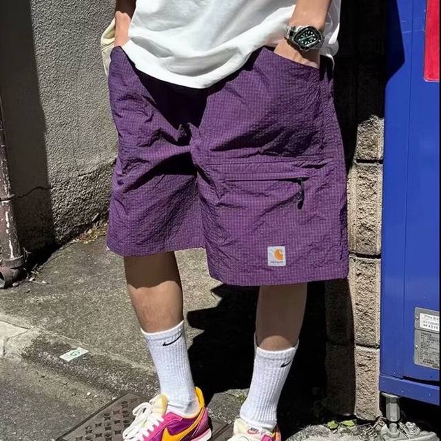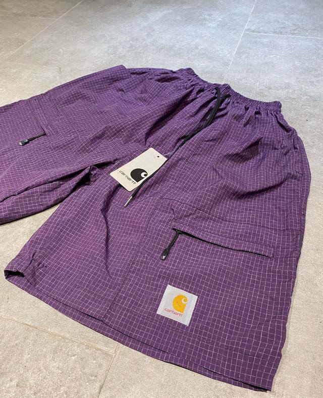 Carhartt high-quality plaid fabric with embroidered logo, large pockets, breathable, thin and loose shorts for couples