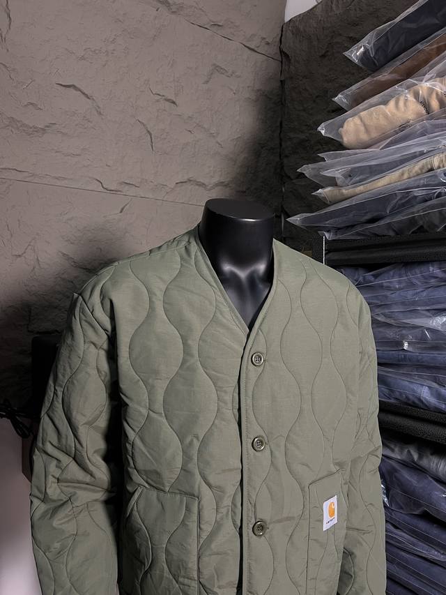 Carhartt V-neck single-breasted cotton coat, original factory order, workwear casual style, super versatile, size S-XL, military green.