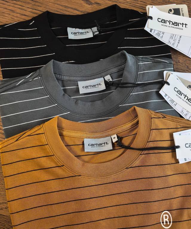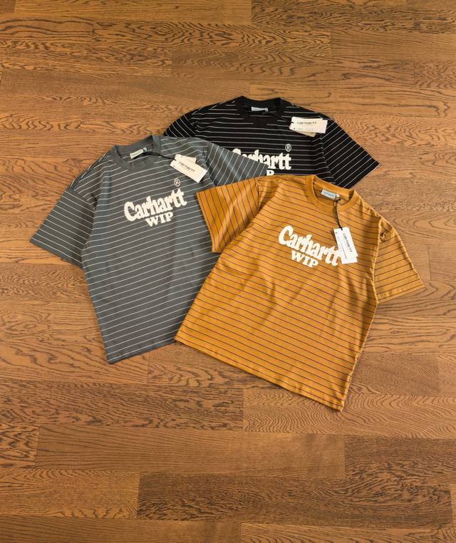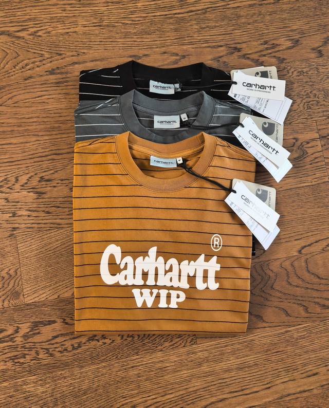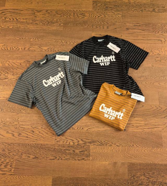 Carhartt Wip letter print striped round neck short sleeves Same style as Yang Mi