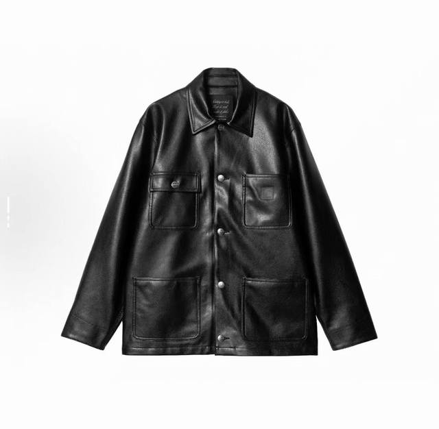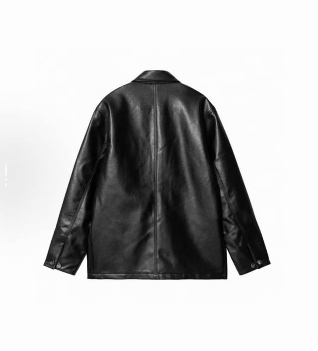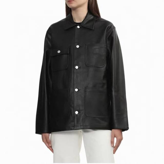 Carhartt Wip SS25 Jacket. Multi-pocket design, button-fastening, long-sleeved jacket for men and women. This official style is also available, and it's been spotted on countless influencers! This streamlined workwear classic is made from eco-friendly PU leather, which is soft and odorless. The loose fit makes it look amazing! Sizes: S-M-L-XL. 175-145 wears M. Length: