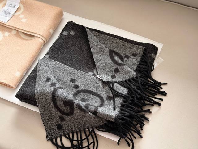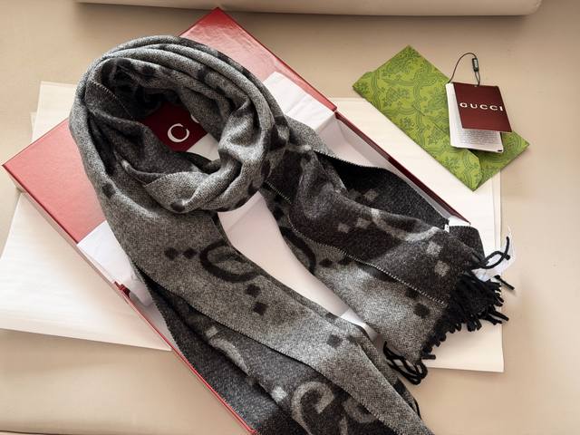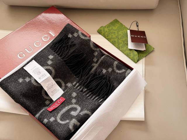 Cashmere scarf with box DDD Size: 64* Cm Ddd Gg New cashmere scarf Ddd Reversible Ddd Full packaging included. Ddd It's black and gray Ddd The black and gray color scheme is unisex~ Very practical and versatile Ddd