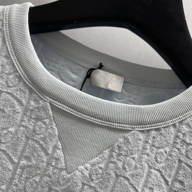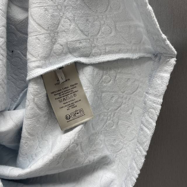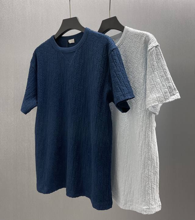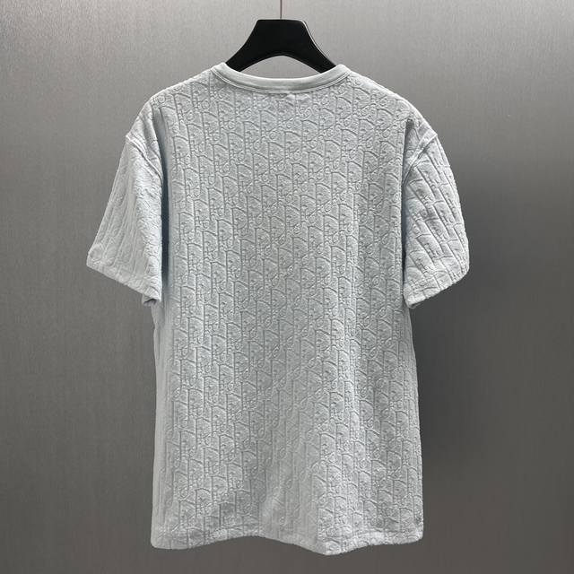 Cd Blue-Grey T-Shirt with Jacquard Knit - Size: S-XL This blue cotton terry t-shirt features a tonal jacquard pattern, paying homage to the classic Oblique print. A ribbed crew neck with V-neck details creates a casual look. The relaxed fit pairs well with jeans or sweatpants for a more sophisticated style.