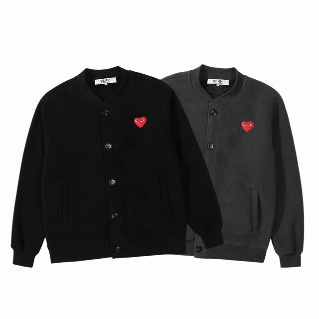 Cdg Play Comme des Gar?ons Rei Heart Embroidered Retro Fleece Baseball Jacket. Customized main label, accessories, and washing included. Brand precision embroidery label. Original quality, a must-have for autumn and winter. Fleece-lined and thickened, made from premium soft and skin-friendly fleece fabric. The lining is made of heat-retaining mink fleece. Suitable for both inner and outer wear! Comfortable, casual, and stylish. Can be paired with any bottoms for easy styling. Slimming and height-enhancing. Perfect for both men and women. Color: Black, Gray. Size: S, M, L, XL, XL. Length, Chest, Shoulder Width: S 65 112 41, M 67 116 43, L 69 45, XL 71 124 47, XL 73 128 49. (Note: This data is measured manually and may have an error of 1-3 cm.)