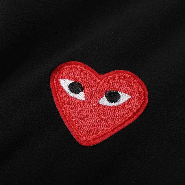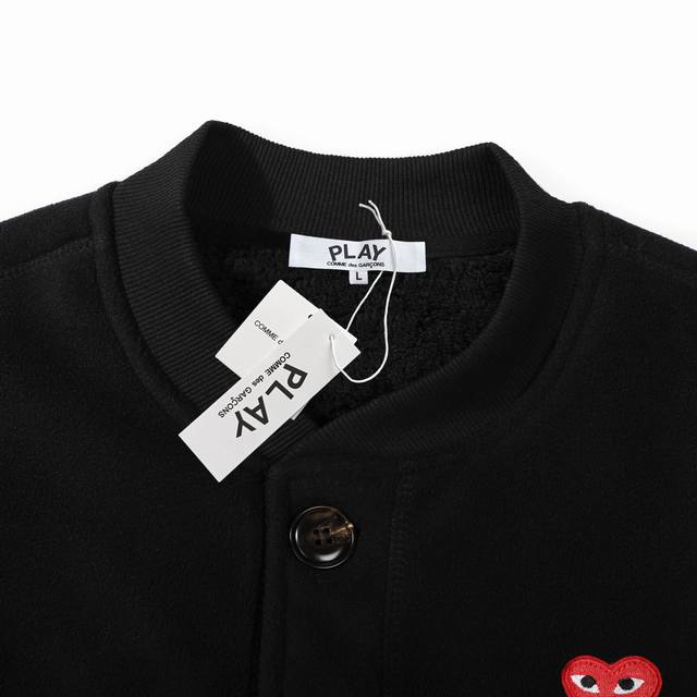 Cdg Play Comme des Gar?ons Rei Heart Embroidered Retro Fleece Baseball Jacket. C