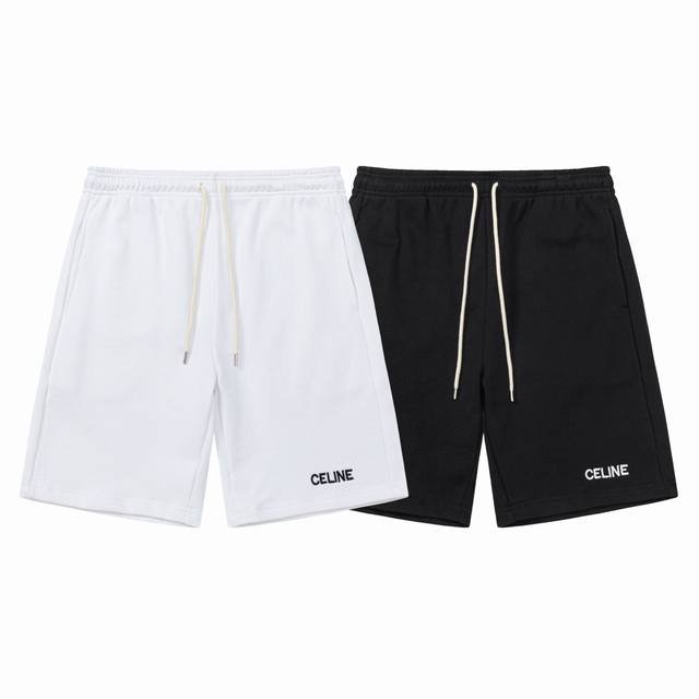 Cel* New summer imported high-density embroidered letter logo unisex casual shor