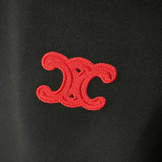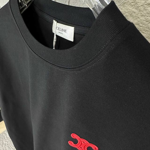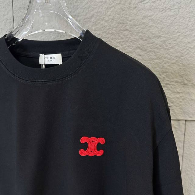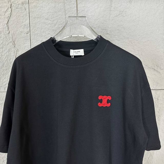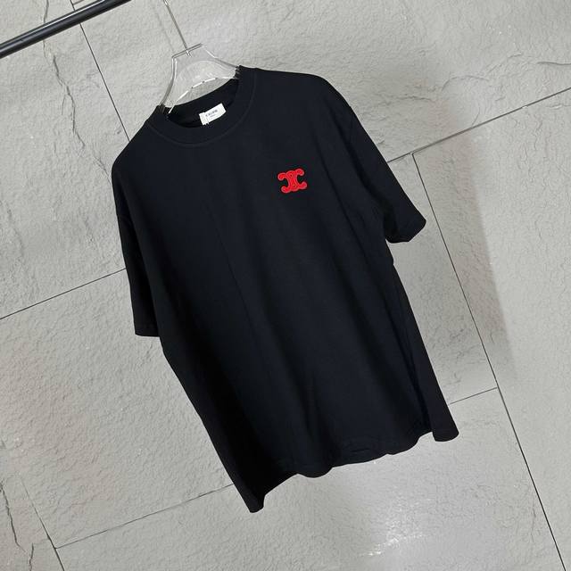Celi* Celine 2025 Spring/Summer Simple Double C Red Letter Embroidered Personalized Logo Custom Double Yarn Plain Cotton Short-Sleeve T-Shirt Unisex Sizes: S 90-130 lbs M 120-150 lbs L 140-165 lbs XL 160-180 lbs XXL 180-210 lbs Colors: Black, White