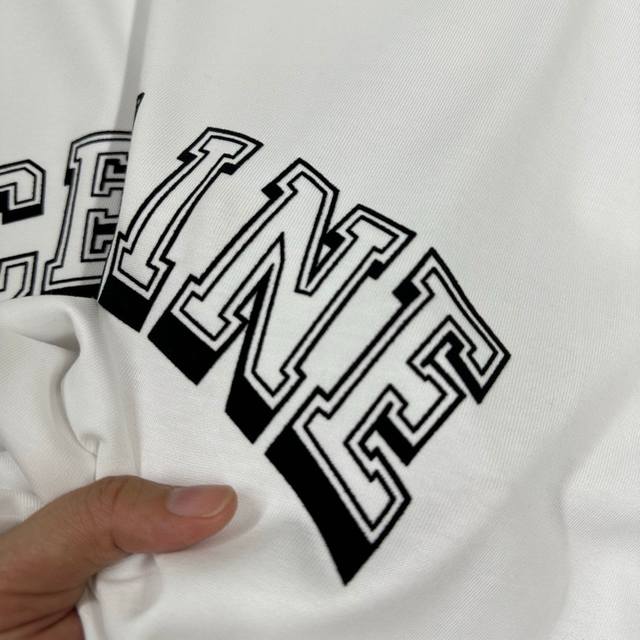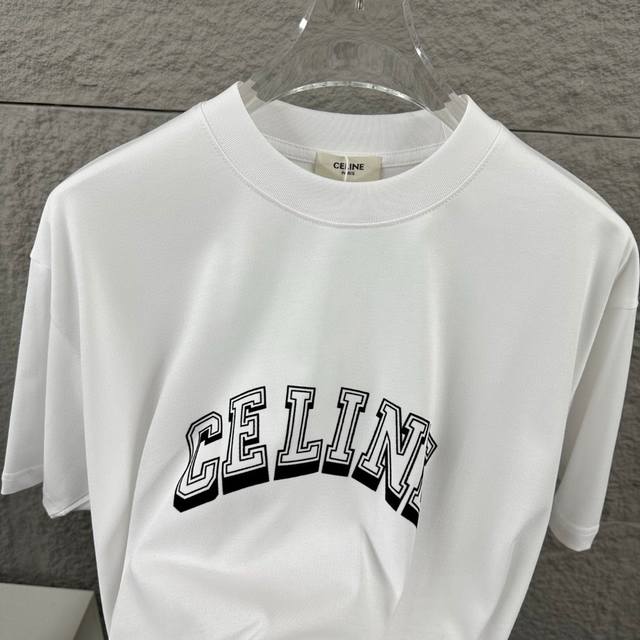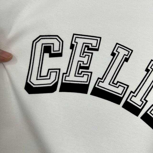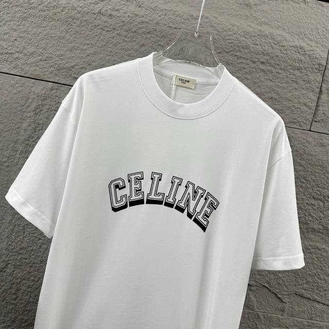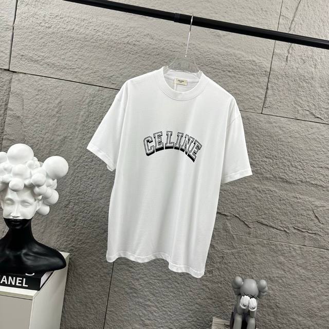 Celi* Celine 2025 Spring/Summer Simple Letter Flocking Craft Personalized Logo Custom Double Yarn Plain Cotton Short-Sleeve T-Shirt Unisex Sizes: S 90-130 lbs M 120-150 lbs L 140-165 lbs XL 160-180 lbs XXL 180-210 lbs Colors: Black, White