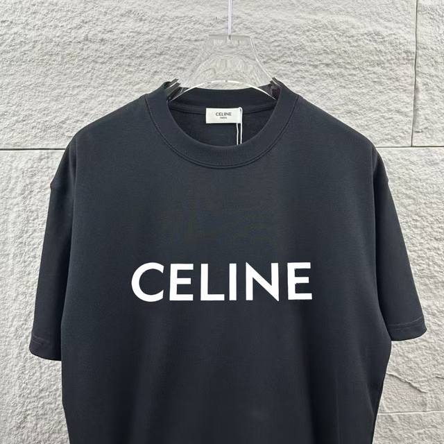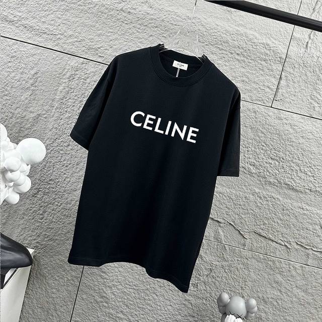 Celi* Celine Spring/Summer Simple Letter 3D Thick Silicone Craft Personalized Logo Custom Double Yarn Plain Cotton Short-Sleeve T-Shirt Unisex Colors: Black, White Sizes: S 90-130 lbs M 120-150 lbs L 140-165 lbs XL 160-180 lbs XXL 180-210 lbs