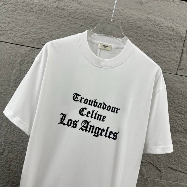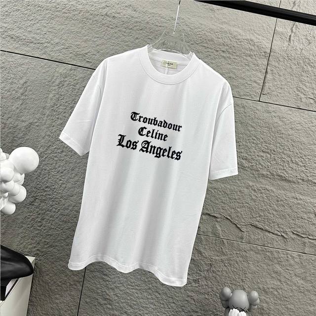 Celi* Celine Spring/Summer Simple Letter Flocked Craft Personalized Logo Custom Double Yarn Plain Cotton Short-Sleeve T-Shirt Unisex Colors: Black, White Sizes: S 90-130 lbs M 120-150 lbs L 140-165 lbs XL 160-180 lbs XXL 180-210 lbs