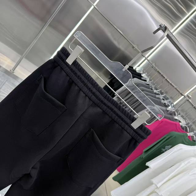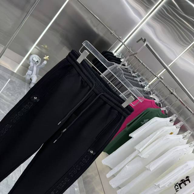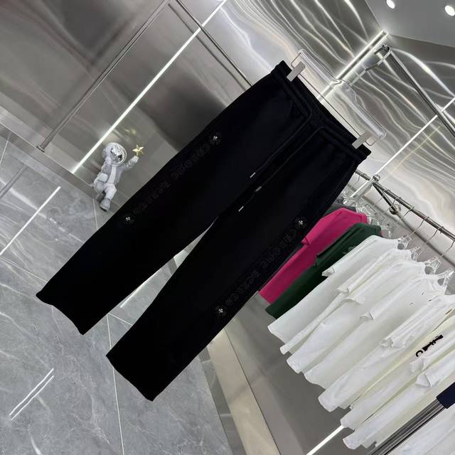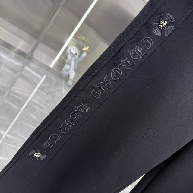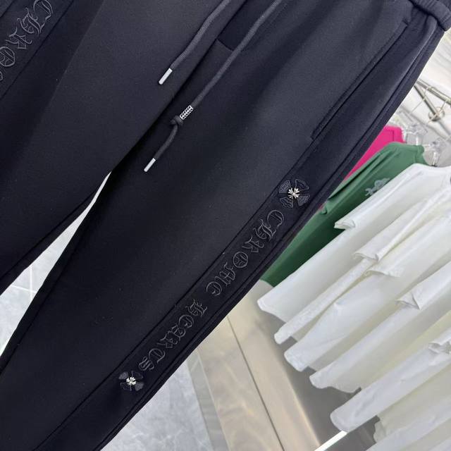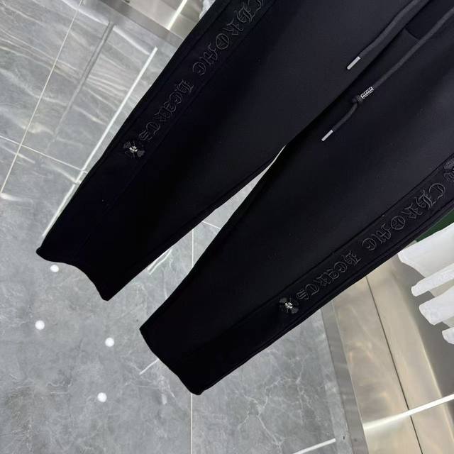 Ch 2025 Autumn/Winter New Style Wide-Leg Casual Pants with Side Embroidery Lettering, Exclusive Custom Fabric, Black & Gray, Five Sizes: M, L, XXL, Xxxl,