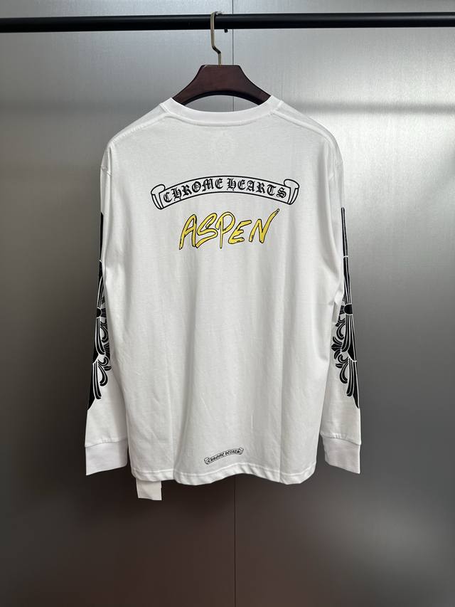 Ch Aspen Graffiti Limited Edition Long-Sleeve Shirt. Made of 220g 26kJ cotton, with custom ink printing and accessories. Color: White. Sizes: S, M, L.