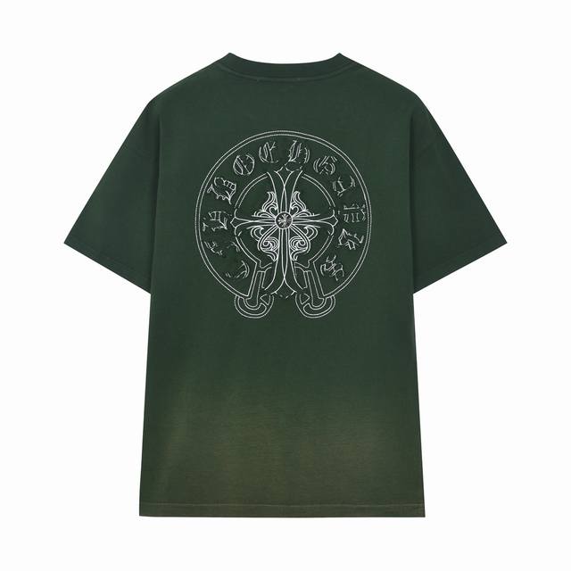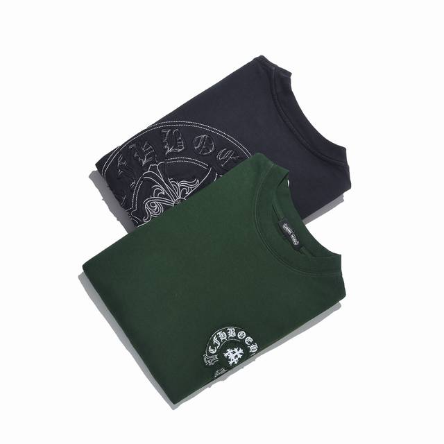 Ch Cro 2025 new style 420g heavy washed color sprayed horse slip fabric heavy applique embroidery embroidery craft short-sleeved T-shirt