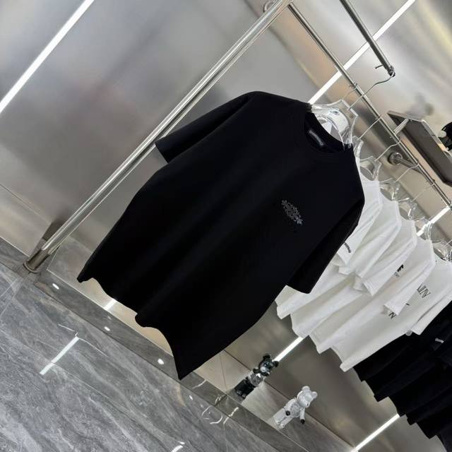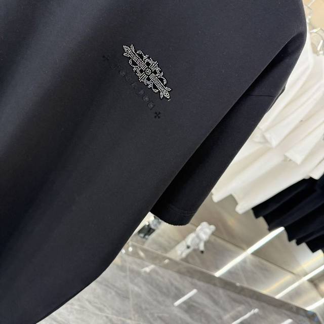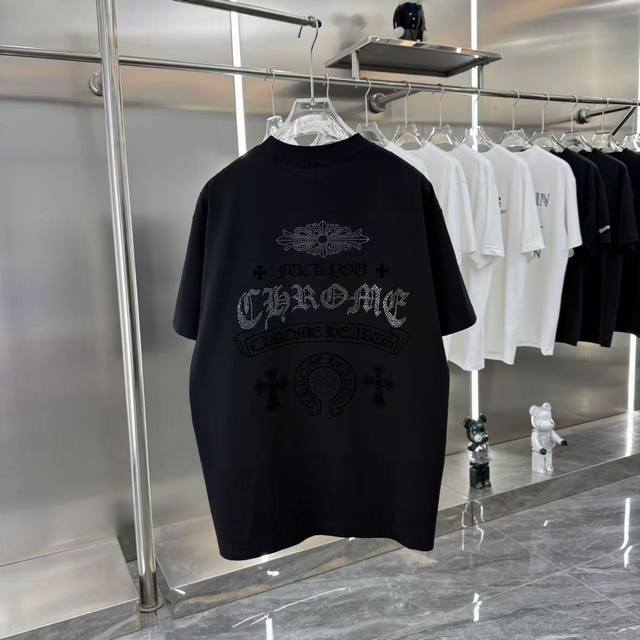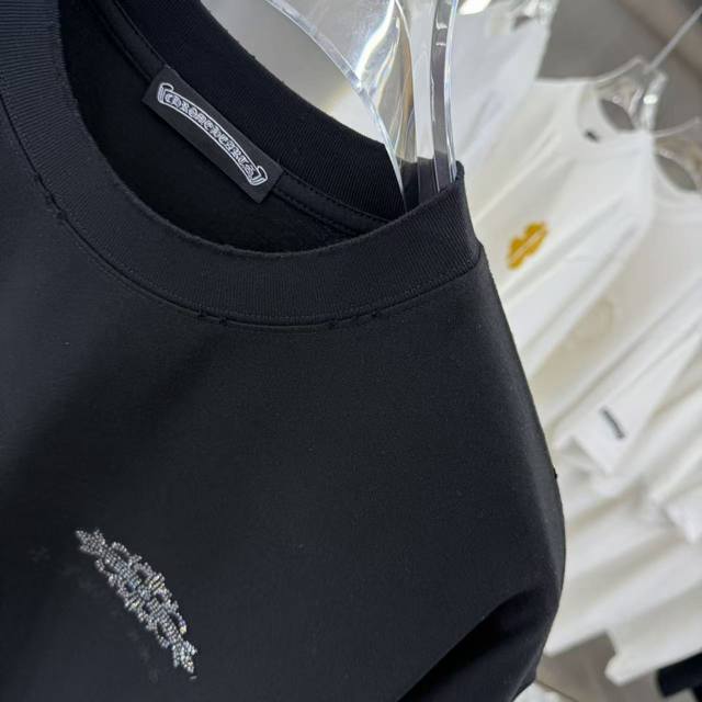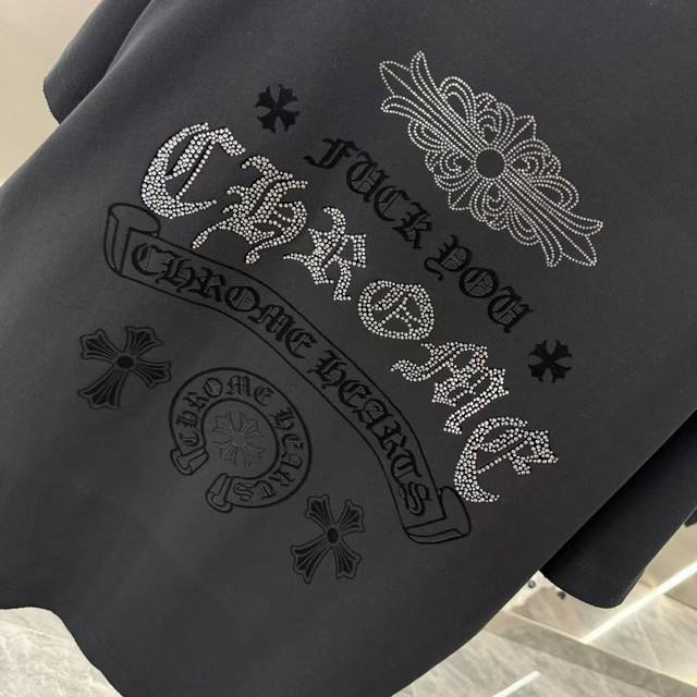 Ch Crowe 2025 Spring and Summer New Fashion Hot Diamond Flocking Round Neck Shor