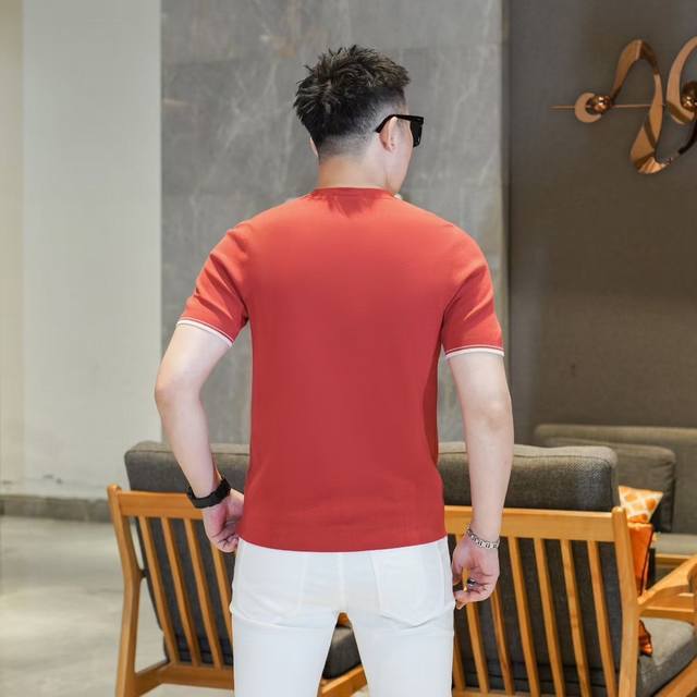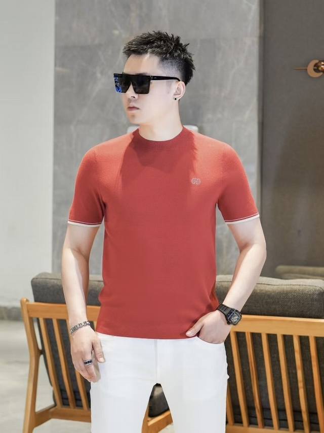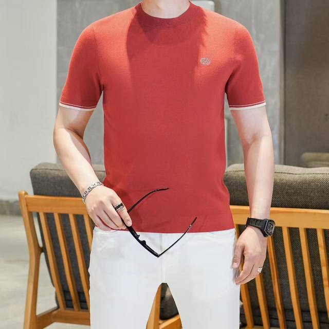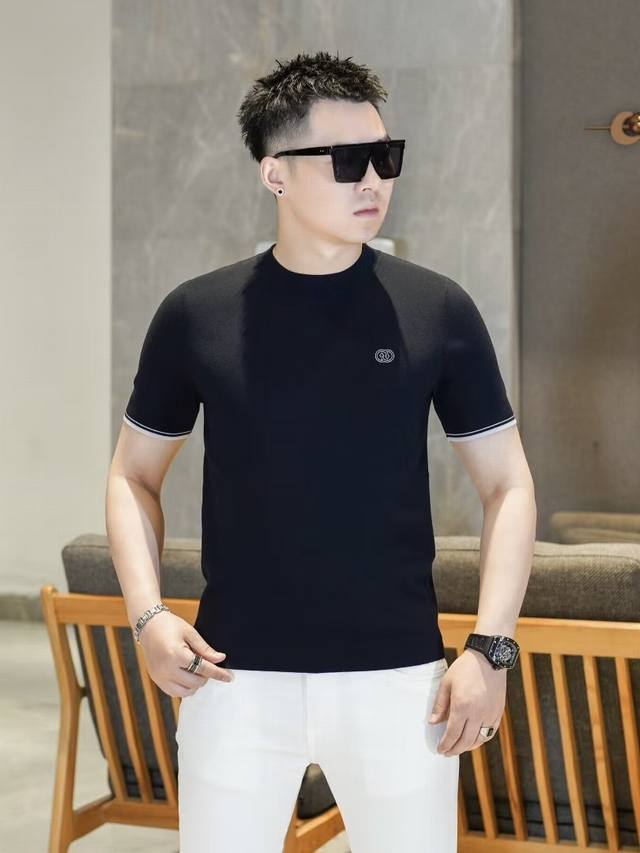 Chrstia*Dio*Dior 2025Fw Autumn/Winter New Men's Fashion Casual Imported Mulberry Silk Short-Sleeve Knitwear. A timeless and stylish piece that always attracts attention with its unique flair. Made with custom-supplied Piquet knit fabric, the quilted design ensures an exceptionally smooth and delicate feel, free of any roughness, making it incredibly comfortable and breathable. The classic straight-cut double-needle hem and ribbed knit cuffs create a sophisticated and luxurious look, with a thick, full texture and a brilliant sheen. Every detail exudes luxurious allure. Color: As pictured. Sizes: M-3XL.