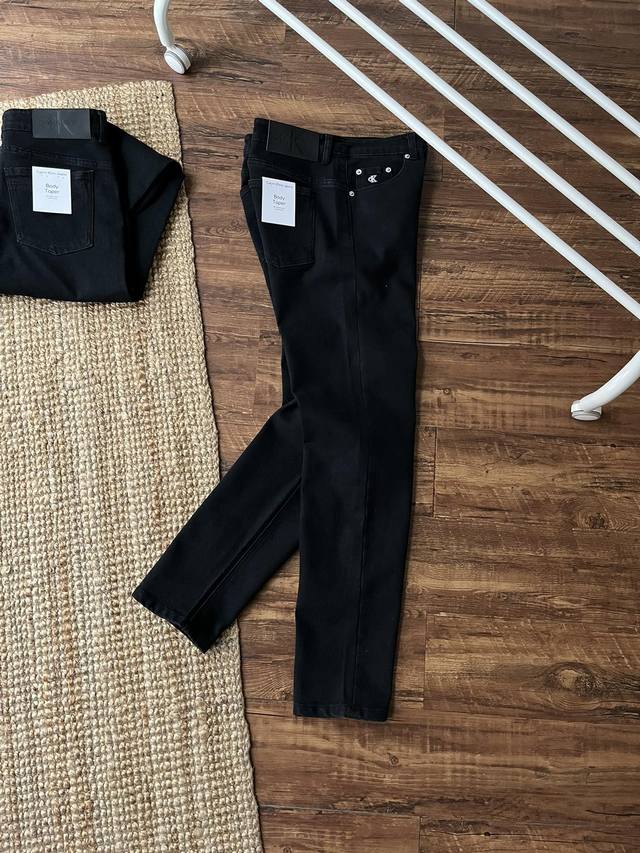 Ck Jeans men's fitted wedge-shaped breathable black washed slightly stretch tapered jeans made of pure cotton stretch denim fabric, fitted wedge shape, three-dimensional cutting, loose at the hips and gradually narrowing from the knees to the ankles, suitable for all body shapes, rivet buttons with smooth zippers, simple and fashionable, pocket watch strap with Ck embroidery as a delicate embellishment! The hardware logo is clear and the workmanship is fine. The CK print on the inside and the logo label on the back waist highlight the brand style. The flat seams and double seams are used to shape the shape! The black washed process on the pants body is retro and elegant, with a perfect texture! Soft and stretchy, moderate thickness, comfortable and non-sticky, super cost-effective, friends who like it should not miss it!