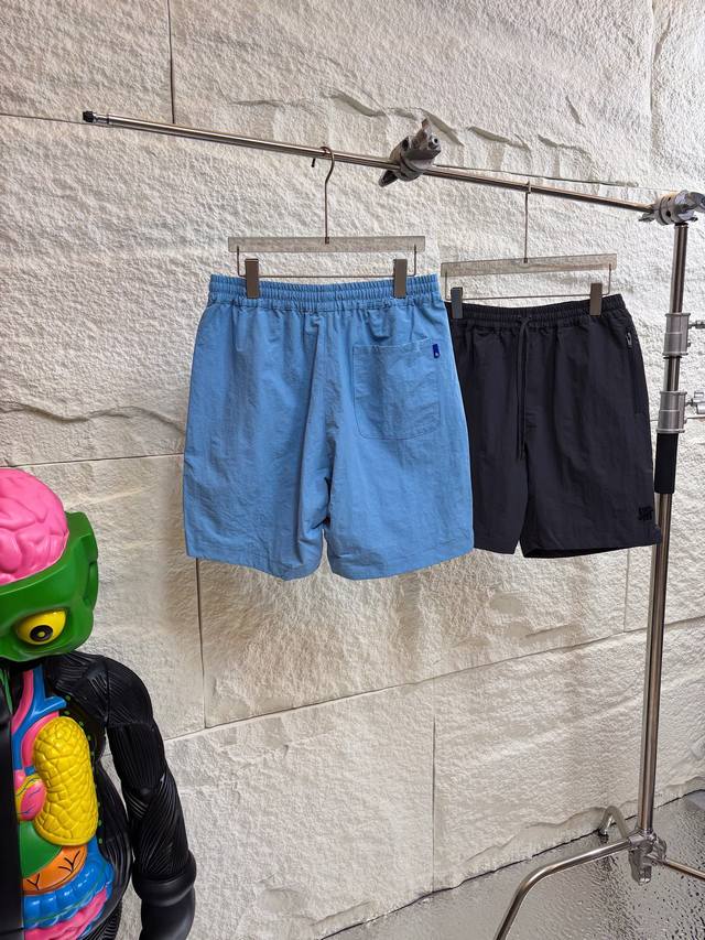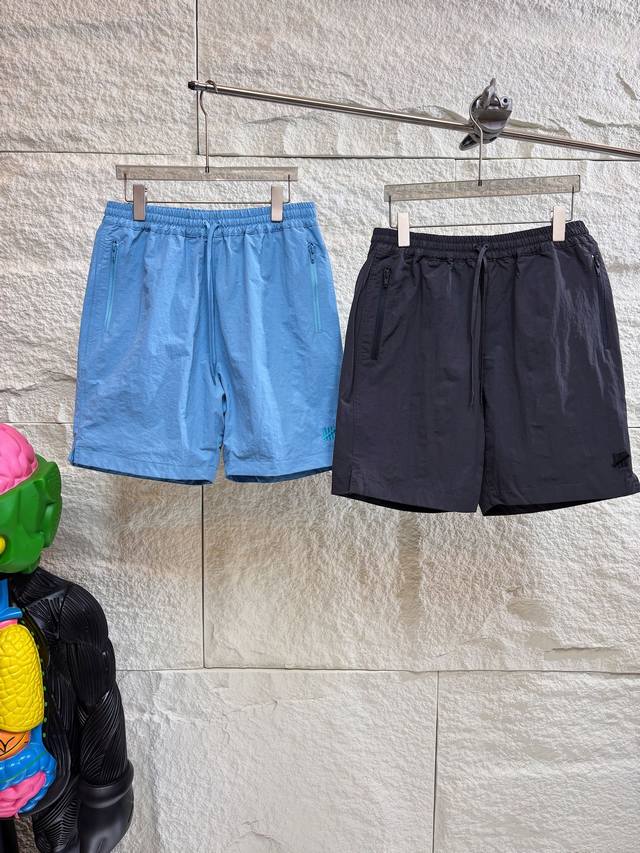 Custom woven nylon fabric Fabric has a water-repellent coating Classic five-bar embroidered logo Trouser leg slits Zipper pockets Waist drawstring Mesh lining Close-fitting and comfortable hip pocket Custom five-bar