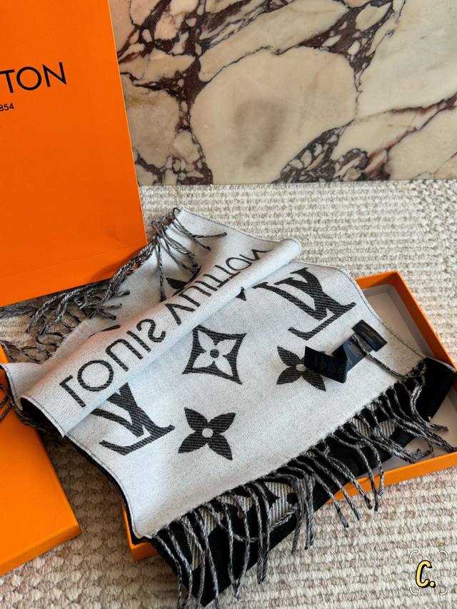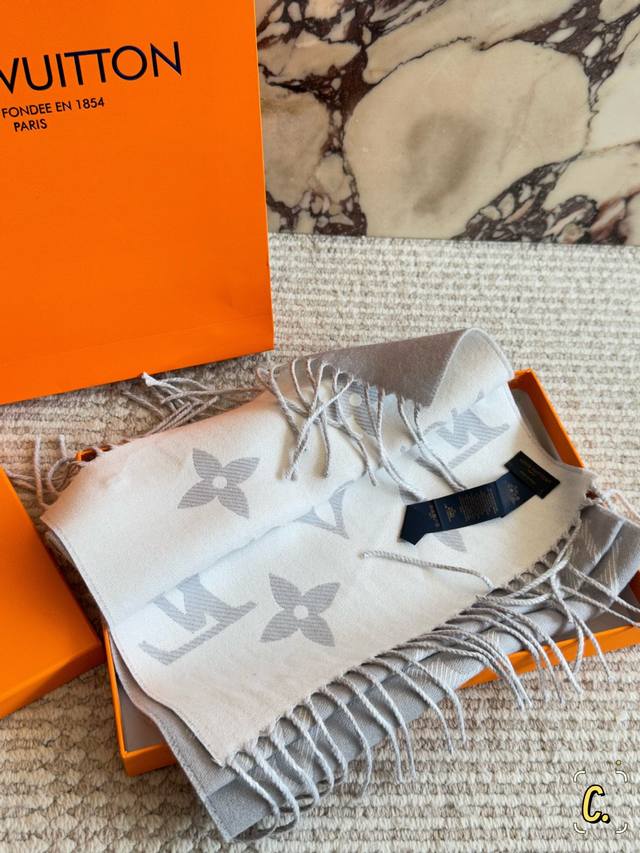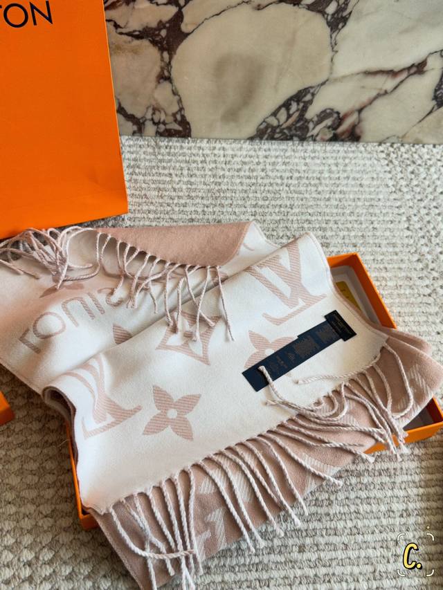 Comes with box. Size: 170*35cm. L's new reversible scarves are so beautiful! Milk tea color, reversible. 100% wool, exceptionally soft, perfect for every soft and delicate girl. Super comfortable texture, not itchy at all. High quality, not inferior market goods.