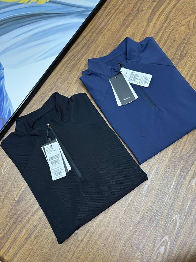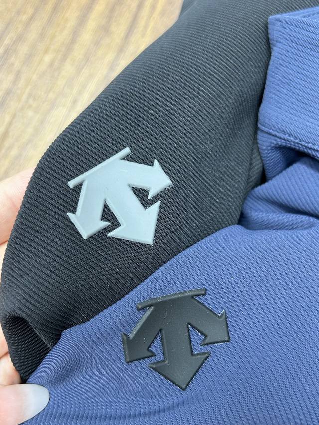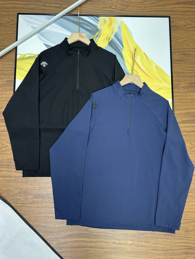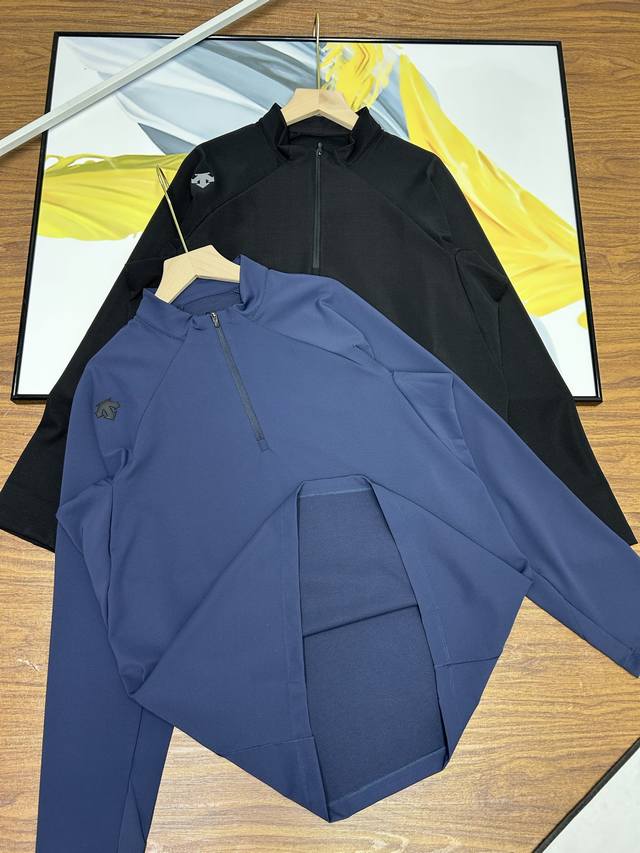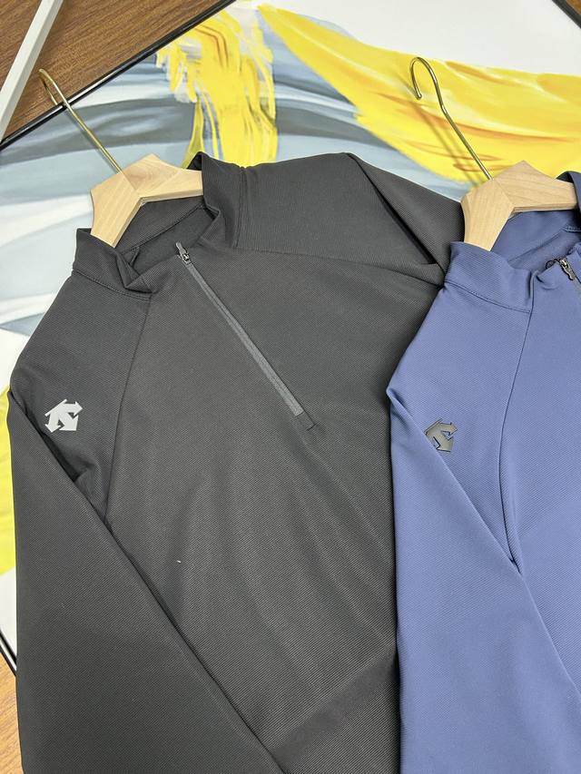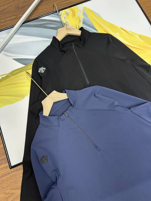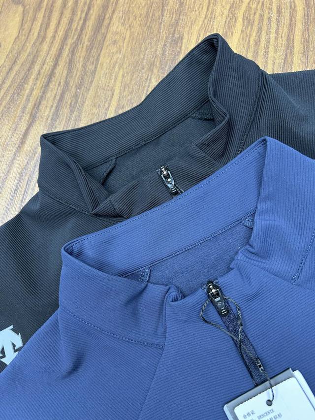 control, Descente men's half-zip base layer top, two-tone Descente training and