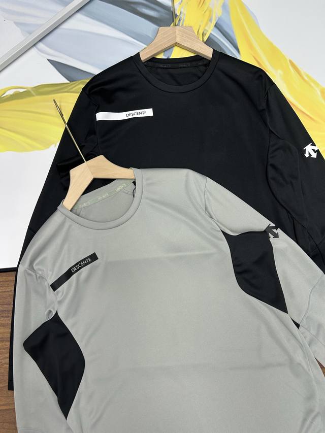 control, Descente men's spring and autumn outdoor running and hiking casual breathable long-sleeved crew neck T-shirt. All-weather outdoor sports series! Long-sleeved running and hiking base layer. High-quality fabric is skin-friendly, soft, sweat-wicking, and breathable. Outdoor functional fabric is quick-drying, highly stretchable, and lightweight! The 3D cut is simple yet sophisticated, and the look is absolutely perfect! This high-performance, high-performance, quick-drying T-shirt features a contrasting logo printed on the arm for men's training, fitness, and hiking. It wicks away moisture quickly after a hard workout, preventing it from clinging to the skin. Every detail, from the shoulder logo to the collar, the stitching to the fabric, exudes professionalism. Whether you're lifting weights at the gym, jogging outdoors, or simply wearing it as a jacket for everyday commuting, this base shirt offers both comfort and style. It's a must-have for active athletes. Material: Spandex and nylon blend. Craftsmanship: Offset printing and 3D tailoring. Color: Gray, Black. Sizes: M-2Xl. Size Chart: M. Chest: 46cm, Shoulder: 48cm, Length: 68cm. Recommended weight: Approximately