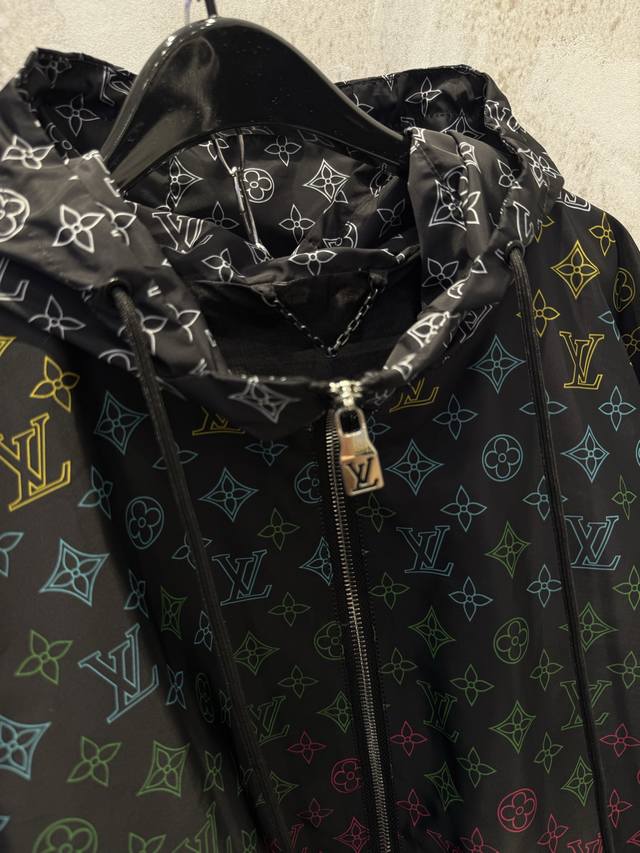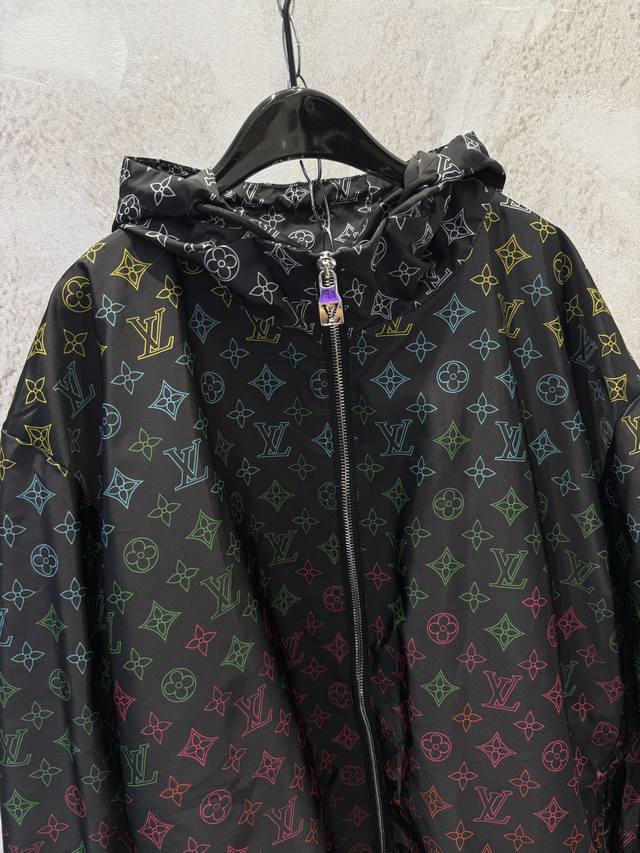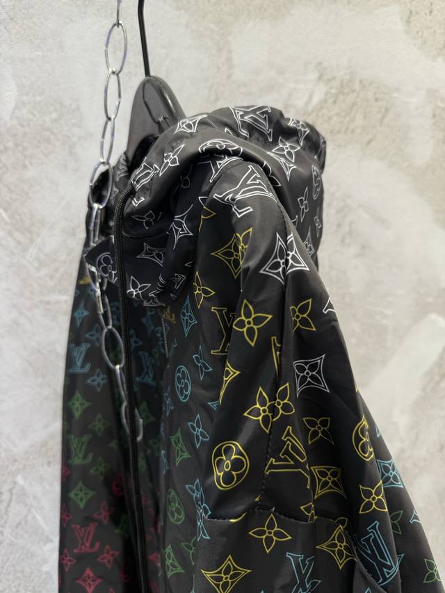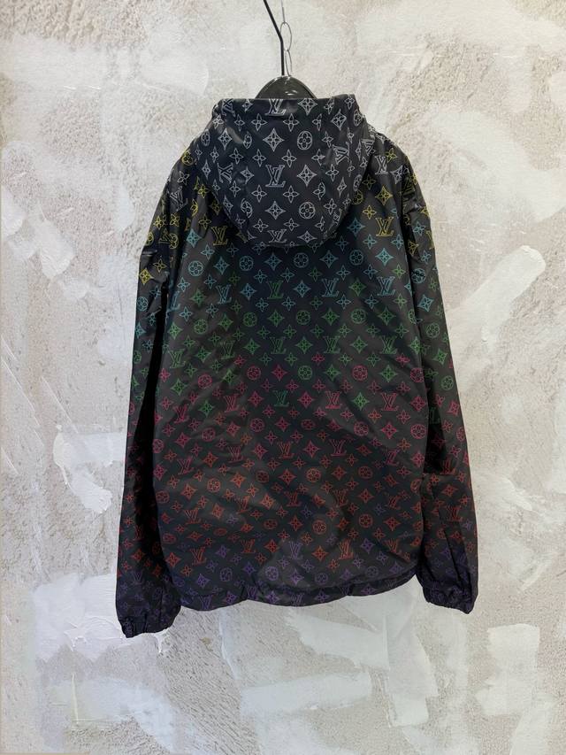 Correct Version 1V Color Floral Gradient Monogram Print Windproof Jacket/Sunscreen Jacket/Windbreaker Ddd This hooded windproof jacket is made of lightweight technical fabric, featuring a subtle gradient effect on the all-over Monogram print, easily adaptable to changing seasons. Drawstring ends are pav