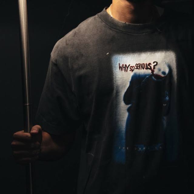 Cts-118 Lu Han's Saint Batman Dark Knight Joker Limited Edition, 260G Heavyweight Pure Cotton Fabric, White Ink Direct Print, Retro Single-stitch Top and Bottom Stitching + Heavyweight Monkey Wash + Hand-Distressed Finish. Sizes: SML XL DDD If Batman represents justice, then the Joker is the ultimate evil. Most criminals can always find a legitimate reason for their evil deeds: revenge, power, wealth... For the Joker, these reasons are tantamount to degrading him. He believes the city needs a "criminal of taste" like himself. Ddd The Joker challenges humanity and despises justice. In his view, any morality, rules, or goodness can be destroyed. A "small push" is all it takes to lead self-proclaimed righteous people down his path. "Everyone has the capacity to do evil, but everyone also has the capacity to do good." "True heroism is loving life even after recognizing its true nature." DDD's custom-made 260g 100% pure cotton special-wash fabric, identical to the original, features a unique blend of sun-tanned, heavily sandblasted fading, edge-brushing, and Assault fermentation washing processes, perfectly showcasing the cotton feel of the fabric. Both the texture and feel are top-tier. After a series of heavy-duty washing and distressing processes, the garment's retro and high-end feel reaches its peak. DDD's garment-making process utilizes the most common and complex single-needle stitching technique found in vintage brands like Saint Michael, also known as single-stitch top and bottom stitching.