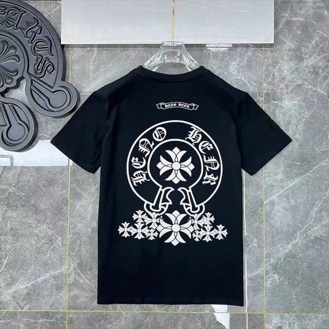 High version Ch Sanskrit short-sleeved T-shirt pure cotton men and women colorful hand-painted love cross horseshoe T-shirt made of 250 grams of pure cotton fabric, three labels all black S-Xl