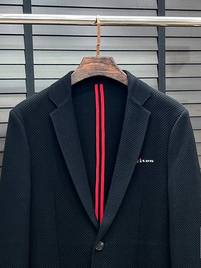 D-49 Kiton 25Fw Autumn New Men's Business Casual Knitted Wool Suit Jacket, DDD High-End Ready-to-Wear Series! A treasure-level functional piece that combines fashion sense and design, creating a unique style. The overall silhouette leans towards a minimalist style, with a distinctive embroidered logo design on the chest, a rather individualistic and sophisticated detail that enriches the overall visual appeal! DDD uses a new patented wool blend fabric, with a certain proportion of wool material creating superior and unique fabric characteristics. It is naturally elastic, has excellent extensibility, is crisp and stylish, extremely comfortable and skin-friendly, and has excellent breathability. It also features powerful moisture management technology, making it lightweight and burden-free to wear! Ddd's craftsmanship inherits the meticulousness and refinement of Italian craftsmanship. The hand-stitched buttonholes are remarkably perfect, the arched buttons are neatly and precisely aligned, and the details are exquisitely crafted. The top-grade yak horn buttons feature natural textures and are engraved with the brand's initials, making each button unique and a testament to the artisan's dedication. Ddd's classic Italian modern business slim-fit tailoring is perfectly executed, with flawless shoulder and waistline treatments. The overall look is stylish, sophisticated, and elegant, with perfect lines that easily highlight one's temperament. It's versatile enough for various everyday outfits, offering high versatility for mixing and matching, suitable for any occasion, from business commutes to casual outings. The effect is sharp and stylish, making it an excellent choice for high-end business casual wear. A rare find! Ddd Color: Black Ddd Size: M-3XL