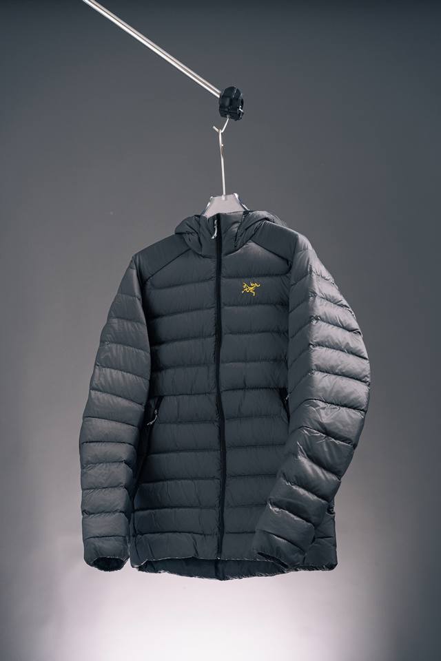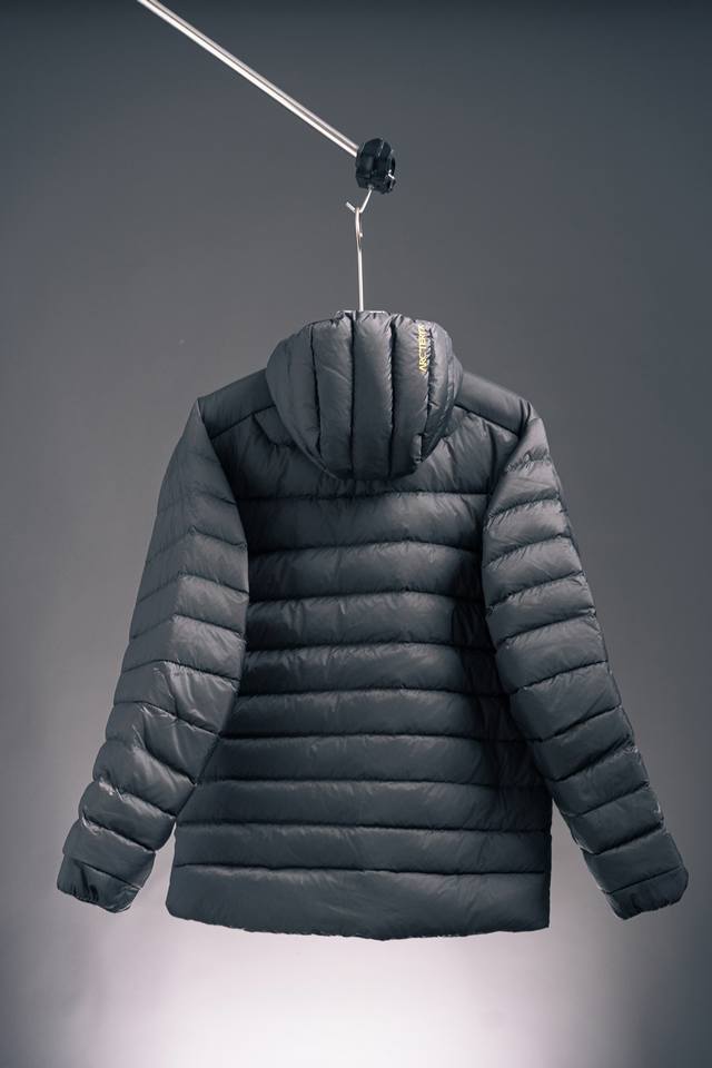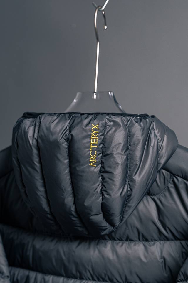 Dark Grey Arcteryx Cerium 850 Fill Power Goose Down Solid Color Lightweight Windproof Warm Hooded Down Jacket. With a fill power of 850 and a down fill weight of 150g, it weighs only 560g, making it ideal for both casual and commuting. It's incredibly lightweight yet provides unparalleled warmth; even among the many Arc'teryx collections, this configuration and overall experience are truly exceptional.