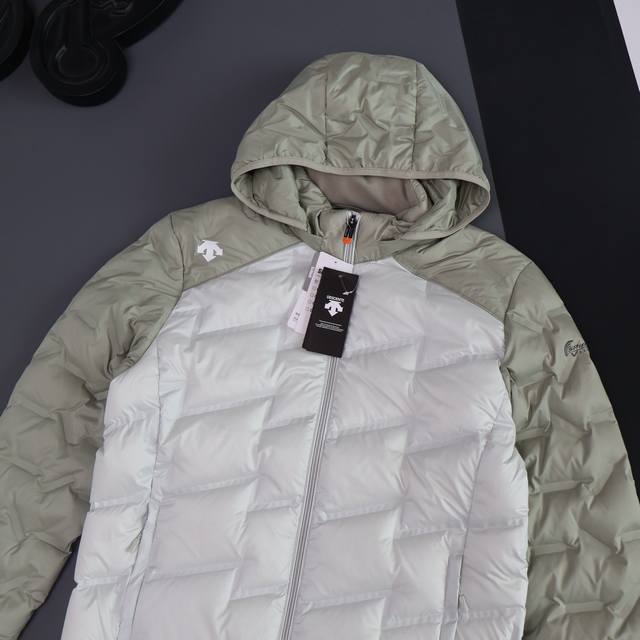 Descente 2025 Autumn/Winter New Style Hooded Lightweight Down Jacket DDD This jacket is made of high-density, ultra-lightweight, functional down fabric that is dense, tight, windproof, waterproof, and prevents down leakage. The inner lining features a graphene heating element for heat retention and conduction. The hood is detachable for two-in-one wear. The cuffs have a windproof design for heat retention. The inner fleece is made of 80% white duck down. This product is genuine and supports testing. It is a 1:1 replica of the original from boutiques. It is lightweight, stylish, and not bulky. A must-have for winter! DDD Color: Black and White Color Block DDD Size: M-3XL DDD