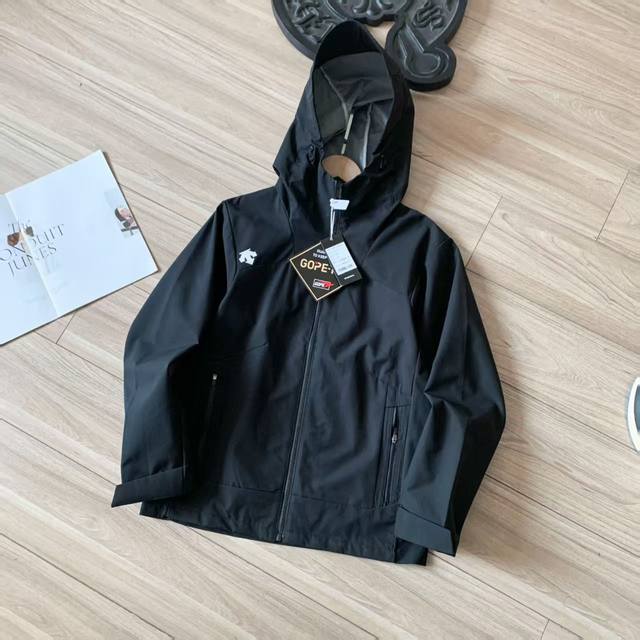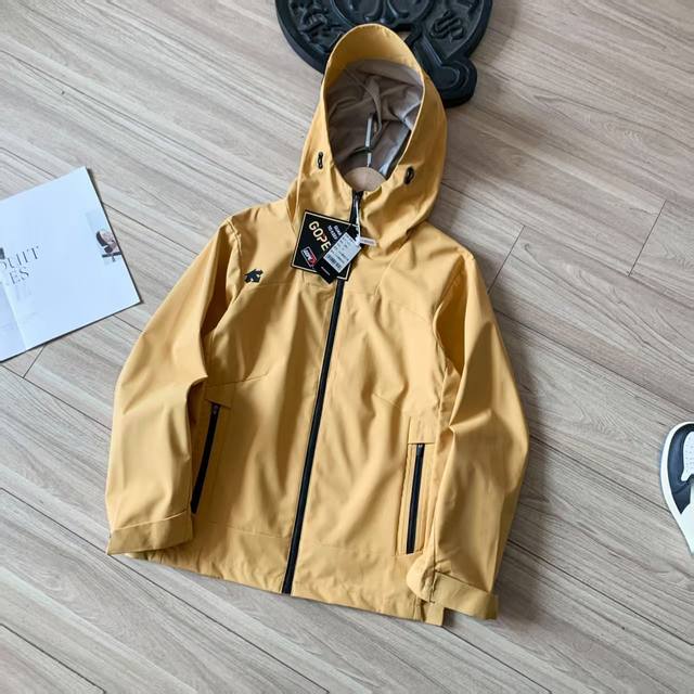 Descente 25 Spring/Autumn Men's Lightweight Waterproof Hooded Outdoor Jacket. Its highly recognizable sporty design elevates your style, making it perfect for both casual and commuting in the city. This jacket's design is instantly distinguishable; it's not your typical jacket, but rather a windbreaker design, offering a more streamlined look while retaining the versatility of a jacket. The heat-sealed finish adds a touch of luxury, and the lotus leaf bionic technology ensures the fabric is soft yet waterproof! Descente's nautical design philosophy is reflected in this jacket, with a high collar providing excellent protection. Four pockets allow you to carry your phone, power bank, and keys without needing a bag. An absolute must-have for outdoor enthusiasts, this jacket boasts essential sporty functionality, including a large brim and high collar for worry-free travel in all weather conditions. Exquisite workmanship, meticulous stitching, accurate sizing, and soft fabric