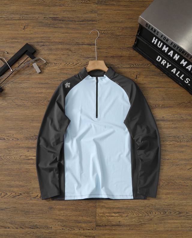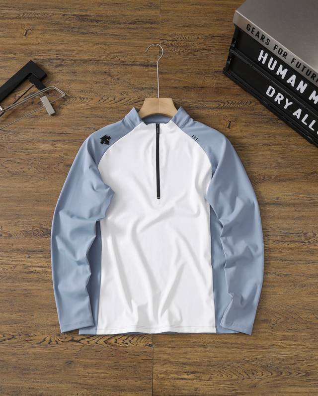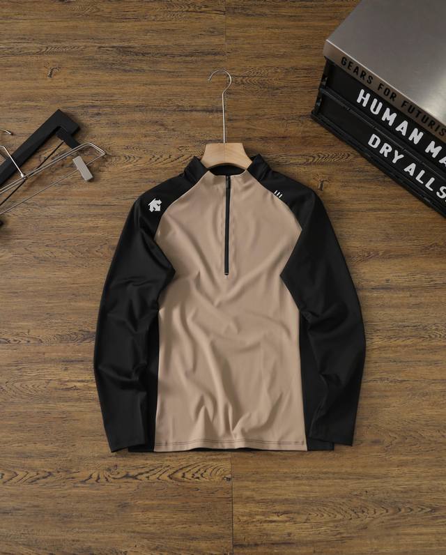 Descente 25S Spring New Half-Zip Color Block Outdoor Sports Hiking Cycling Long-Sleeve Elastic Quick-Drying Base Shirt - Color block design, 3D silicone logo, not flashy, full of brand identity, simple, elegant and textured, high-quality fabric and unique design will definitely not disappoint you! A very elegant and simple style, really good-looking! - Skin-friendly and comfortable, sweat-wicking and moisture-absorbing! The fabric has three top advantages: not easy to deform, not easy to fade, and quick-drying. The 3D logo on the chest, with high-temperature heat transfer printing process, adds to the design's fun and visual appeal. The overall look has both a rigorous elite style and a sharp, sunny sporty feel, showcasing the brand's charm! Colors: Off-white, dark gray, light blue, khaki Sizes: M-3XL