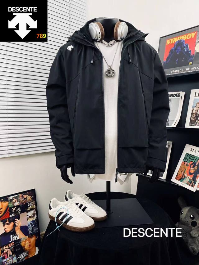 Descente 3-in-1 Sports Outdoor Workwear Style Heavy-Duty Hooded Windbreaker Thre