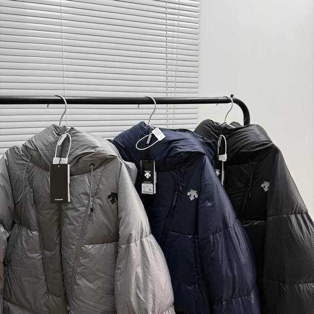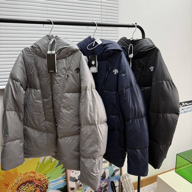 Descente Allterrain 81 Series Men's Glossy Down Jacket. Featuring high-end all-terrain functionality, this jacket uses Pertex fabric, offering windproof, water-repellent, ultra-lightweight, and down-proof protection, while providing excellent warmth! The glossy finish and futuristic design create a minimalist, tech-inspired look. The zippered stand-up collar is highly practical, making it suitable for outdoor sports, commuting, or travel. Combining functionality and style , it's a winter essential! Colors: Black, Blue, Gray. Sizes: M to 3XL. Glossy Down Jacket: A Two-Way Combination of Winter Warmth and Street Style.