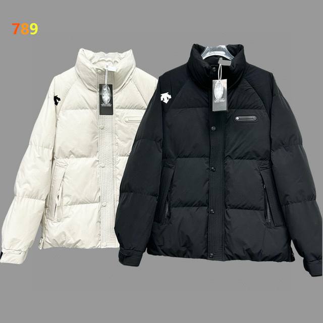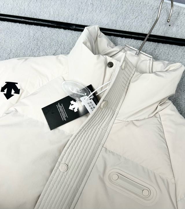 Descente Autumn/Winter Ski Jacket with Stand Collar and Light-Converting Heat Energy - Couple Style - Features built-in thermal conductivity for superior warmth. Unisex, this new Ski Style outdoor short down jacket is designed by top designers, offering classic retro style. Warm yet not bulky, it features a double-layered lining to prevent A9995 down leakage, and is filled with 90% white duck down for high loft and excellent warmth. The Ddd Heat Navi technology efficiently converts absorbed light energy into heat, and the Descente Heat Retention System provides a comfortable, relaxed fit. This Ddd puffer jacket is a must-have for cold winter outings. Inspired by the retro trend of the 80s and incorporating Descente ski elements, its full, rounded silhouette is effortlessly chic. It's warm without being bulky, injecting vitality into the snowy winter. Retro-inspired, with a full silhouette, this stylish and warm high-end outdoor brand jacket boasts numerous details that demonstrate professionalism. Features include a windproof stand-up collar for warmth, brand logo decoration, symmetrical pockets for storage, and a fashionable, beautiful, simple, and practical design. Available in: Black, Army Green, and White.