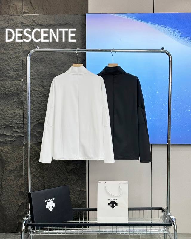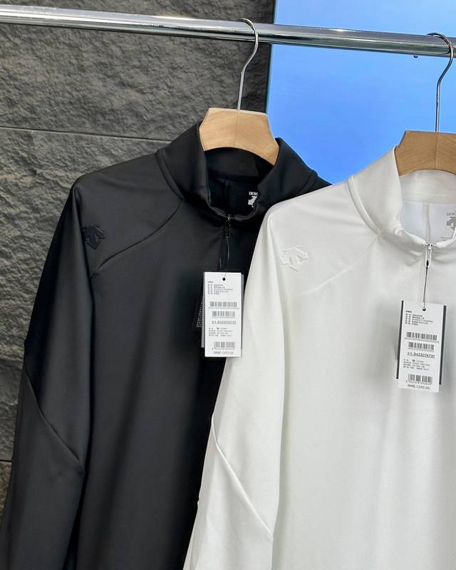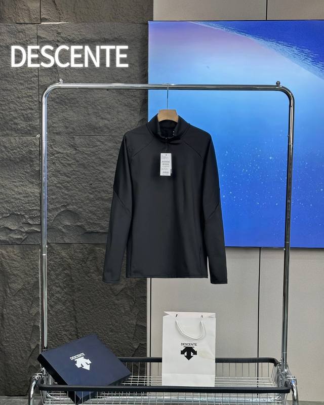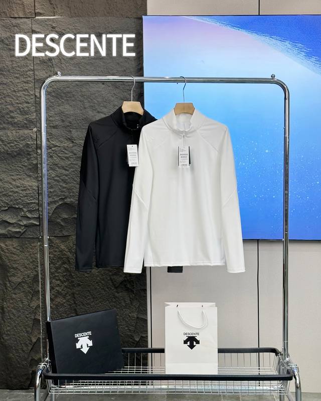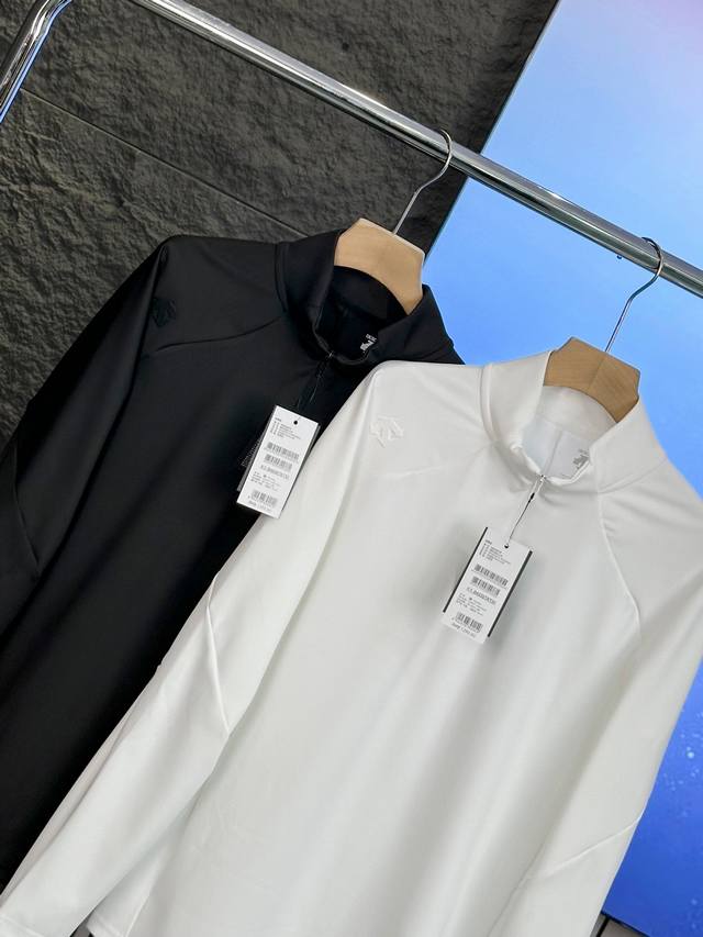 Descente Basic Black and White Autumn Half-Zip Quick-Drying Long-Sleeved Bottoming Shirt