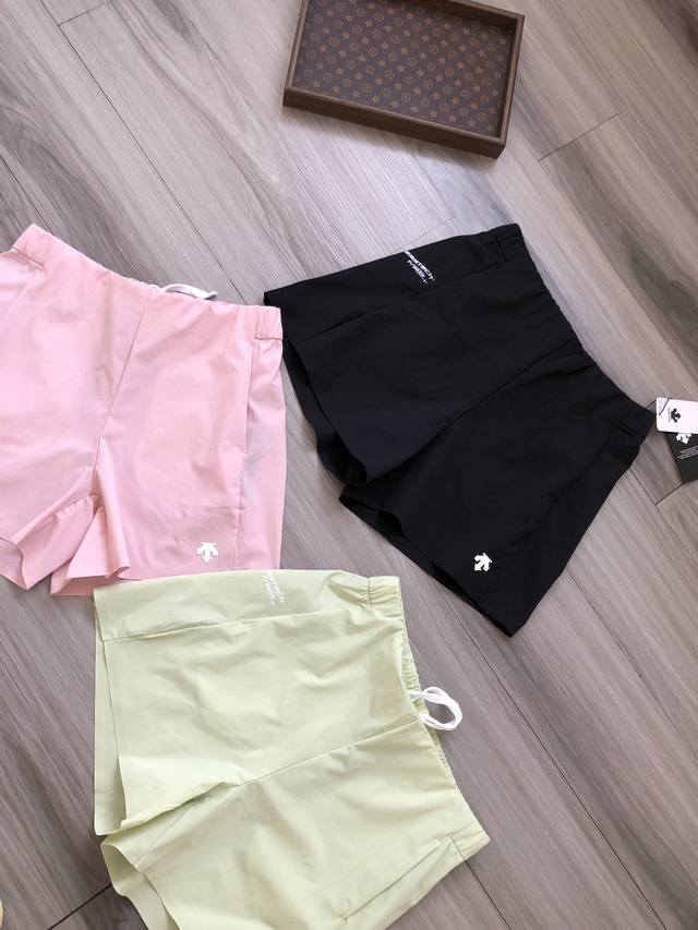 Descente D Women's Training series seamless glued silicone logo offset printing splash-proof sunscreen running sports shorts.